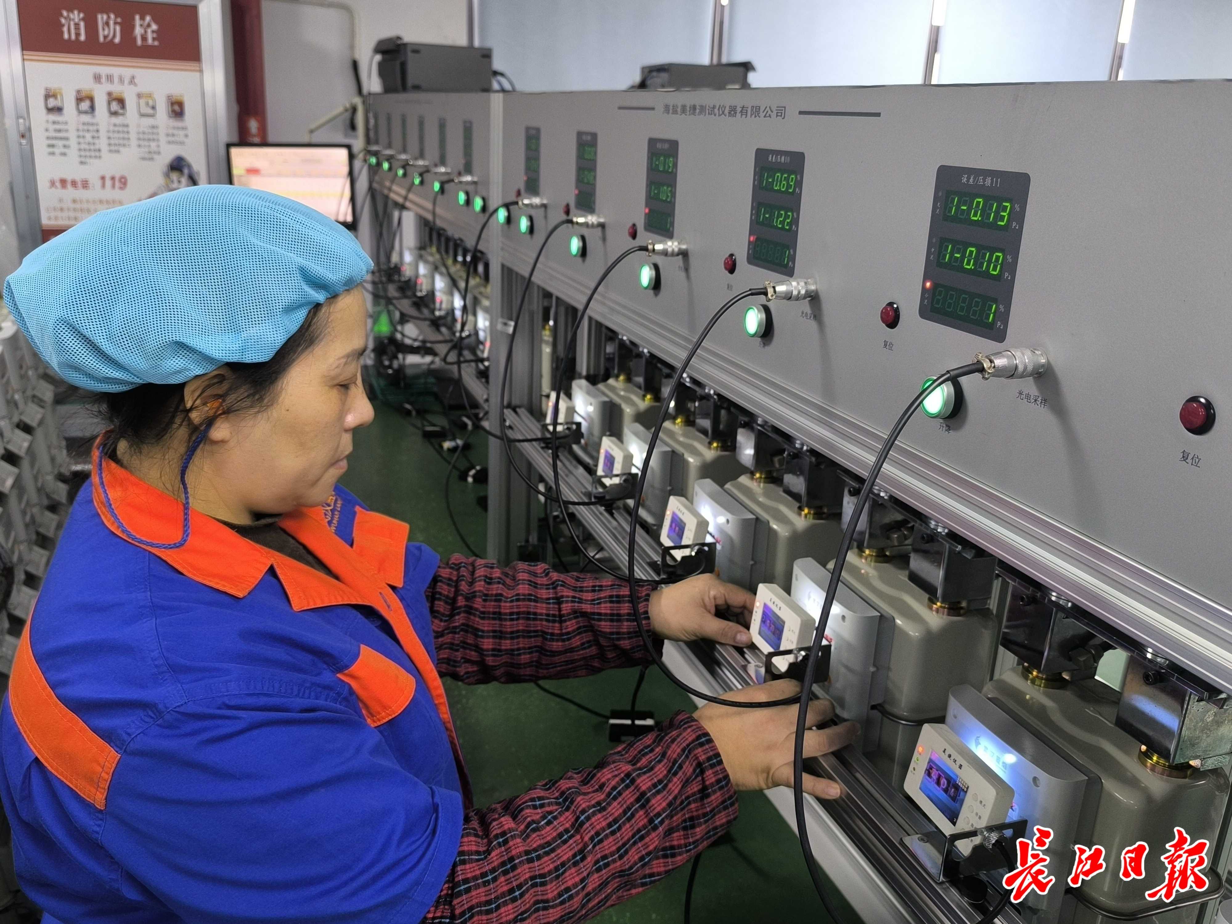 武汉蓝焰自动化公司检验员正在严格核查燃气表计量精度。唐煜 摄