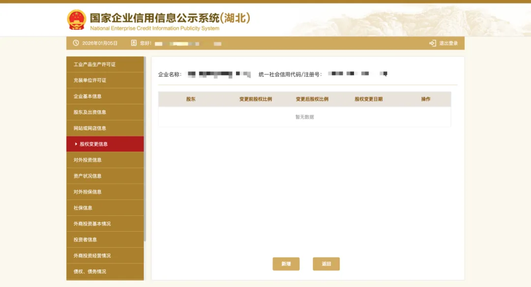 发生了股权、股东变更的企业,请在发生变更后20个工作日内登录年报系统,点击“其他自行公示信息”,在股权变动信息栏目填写相关内容,保存并提交公示。