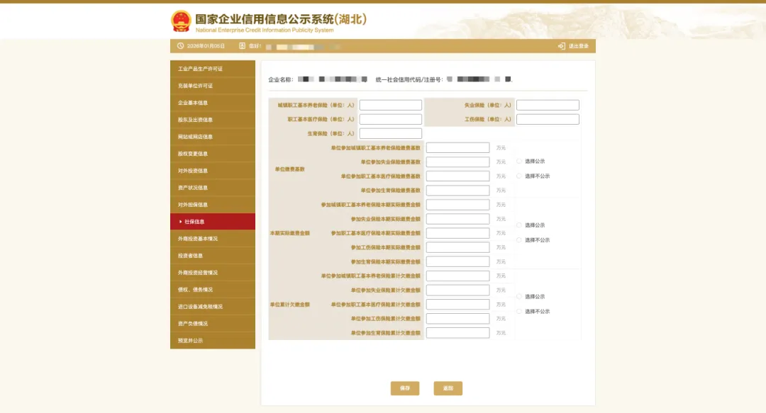 10、填写社保信息,参保各险种人数指报告期末参加社会保险的职工人数(不含离退休人数)。