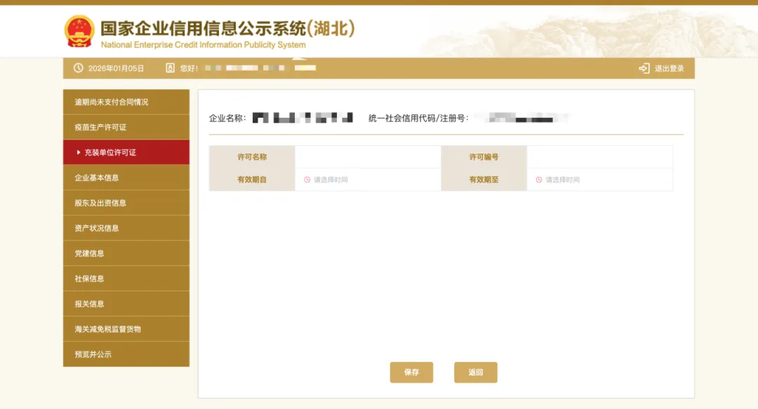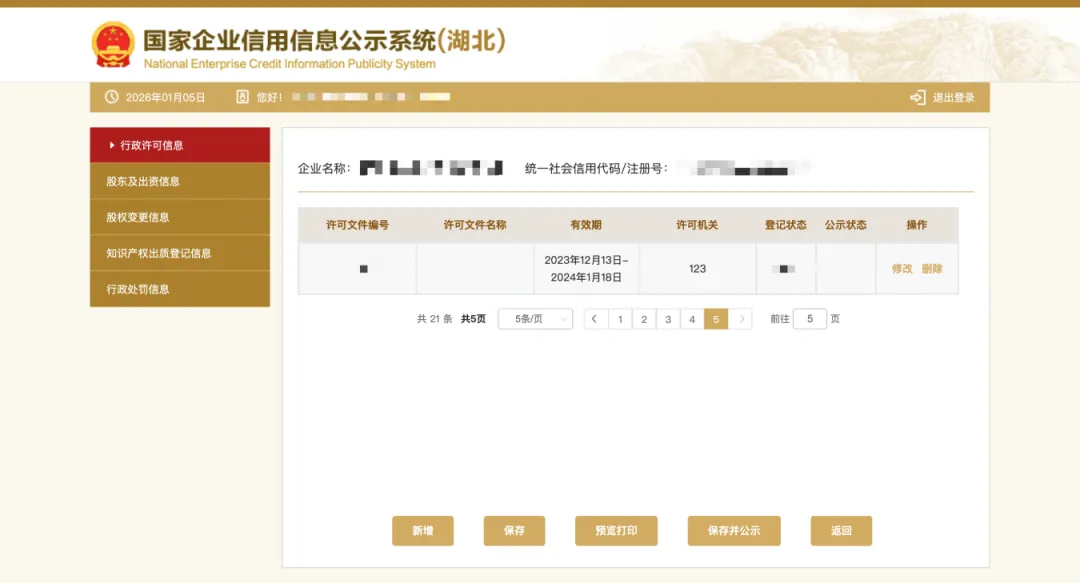 企业若办理有行政许可证的(例如危化品经营许可证,食品流通许可证等),在登录进入年报系统后,须点击“其他自行公示信息”,进入填写页面,点击“行政许可信息”,按照模板内容填写后点击保存,并点击“提交并公示”。