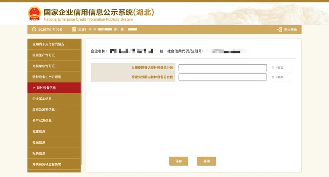注意:如企业没有特种设备,此处可填“0”。