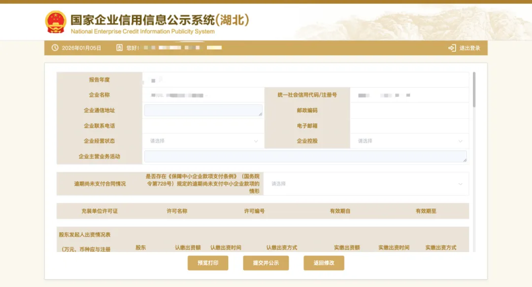 提交并公示后,如发现有部分内容填写错误的,在6月30日前可以登录年报系统页面进行修改。