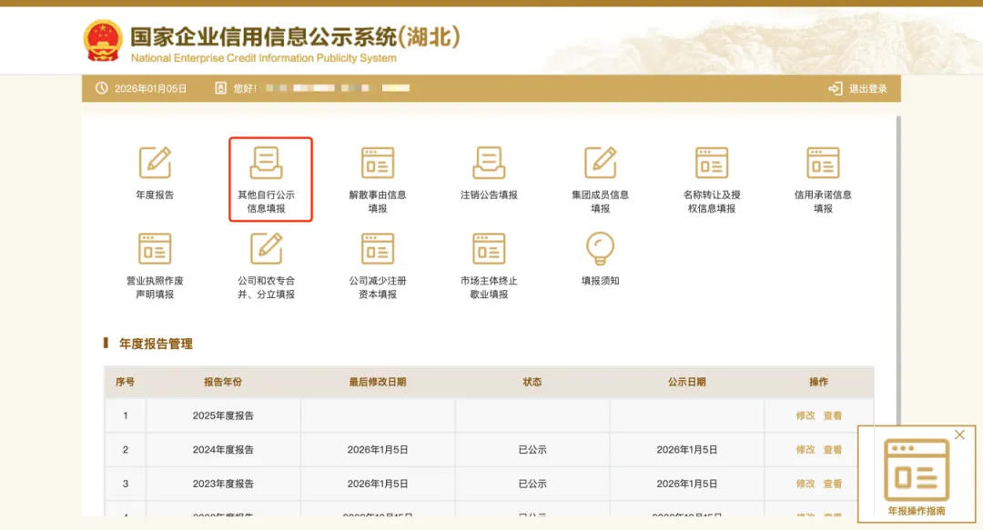 注意:如果往年年报未及时填报,必须先进行补报,才能报送本年度报告。