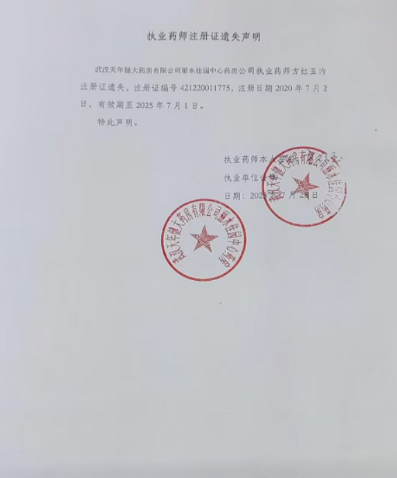 执业药师注册证遗失声明(方红玉)