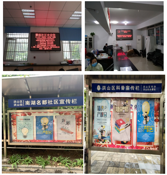 今年的知识产权宣传周紧紧围绕“知识产权与健康中国”主题,以开展科普橱窗、宣传横幅、电子屏等方式对宣传活动进行周密安排。本次活动共有9个街道100个社区参与其中,活动社区的科普橱窗都张贴了知识产权宣传画,电子屏都打出了知识产权宣传内容,并且在社区的重要部位都共打出宣传横幅160余条,各社区相关成员分工明确,相互支持和配合,传播“尊重知识,崇尚创新,诚信守法”的知识产权文化,增强社会大众的知识产权意识,从而进一步扩大知识产权宣传周活动的社会影响,加快知识产权强市建设营造良好氛围。