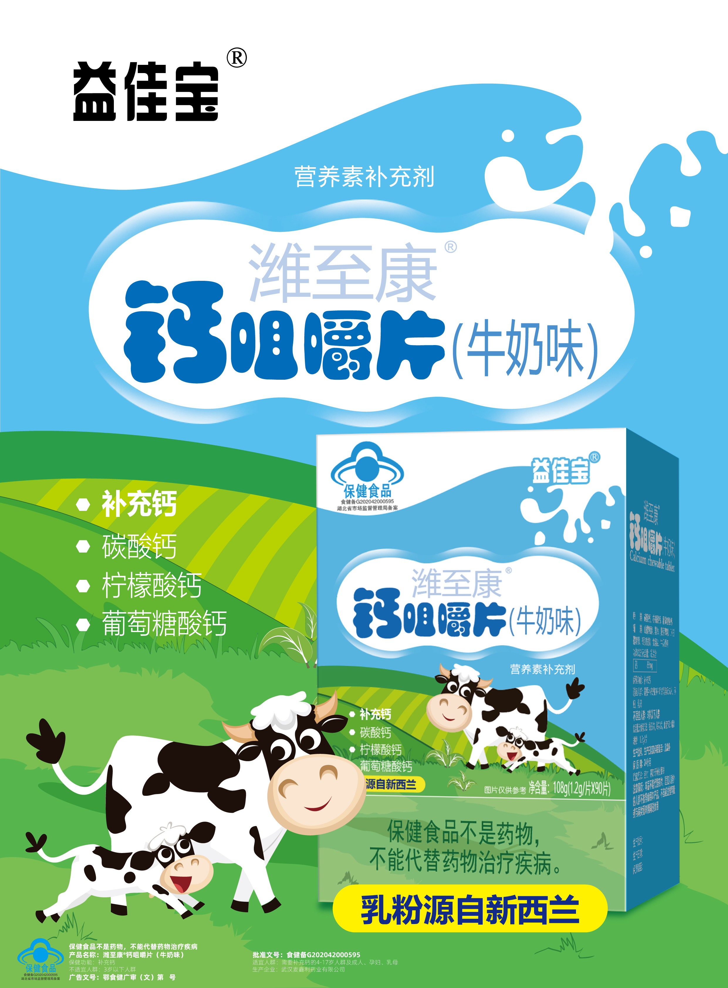 | 鄂食健广审(文)第230114-00541号 | 武汉麦鑫利药业有限公司 | 潍至康?钙咀嚼片(牛奶味) | 文 | 2023年1月14日 | 食健备G202042000595 | |