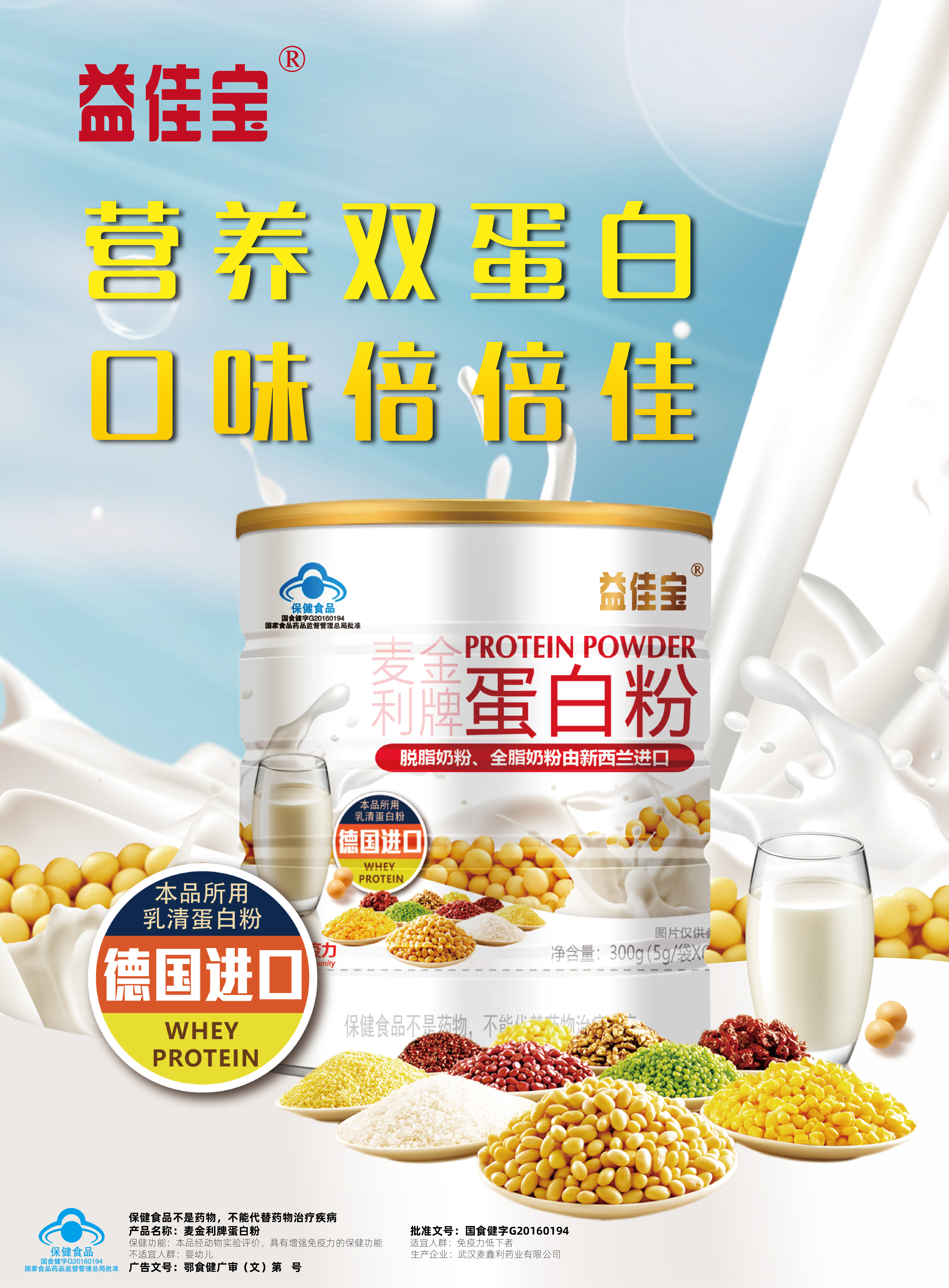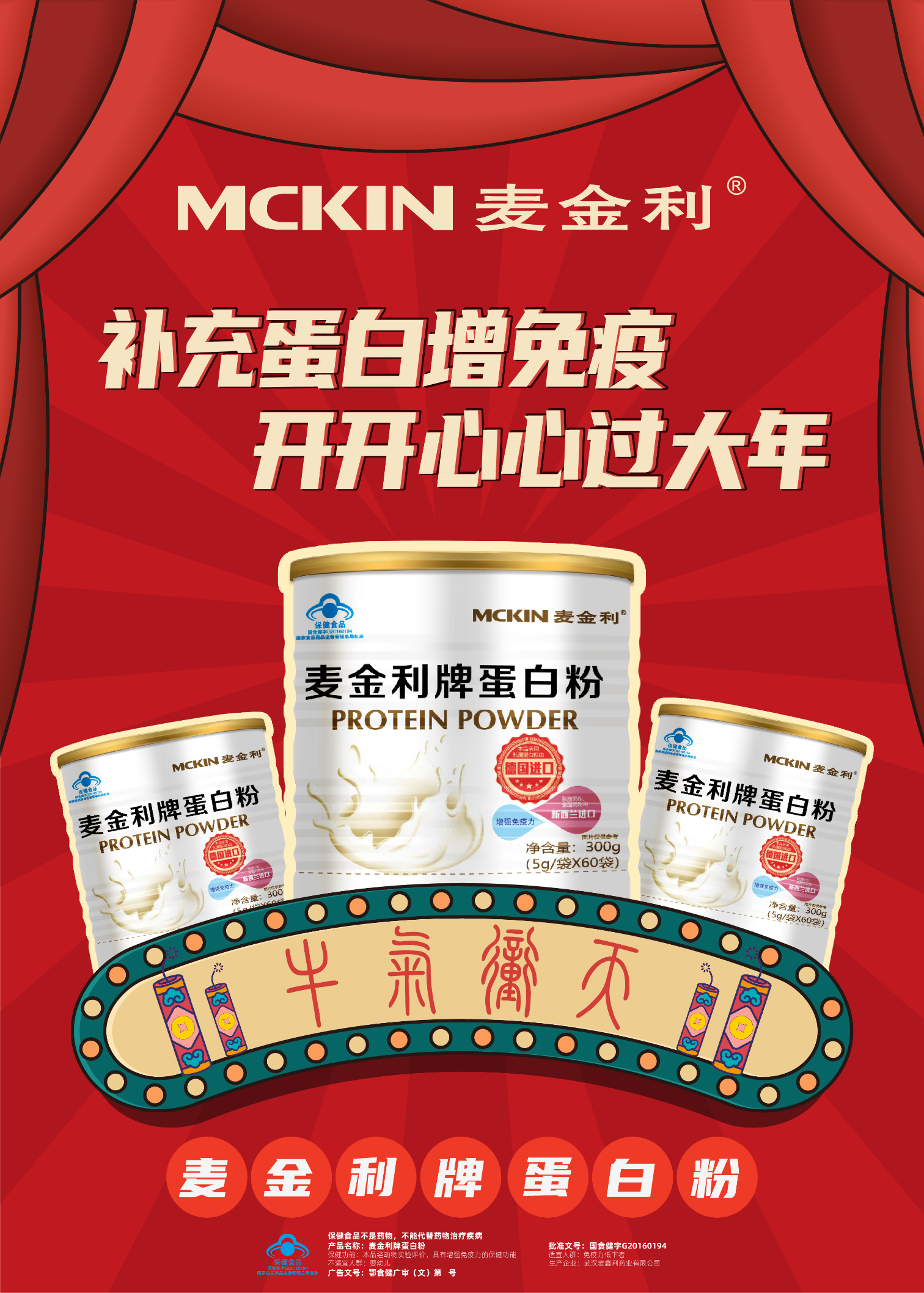 | 鄂食健广审(文)第230114-00530号 | 武汉麦鑫利药业有限公司 | 麦金利牌蛋白粉 | 文 | 2023年1月14日 | 国食健字G20160194 | |