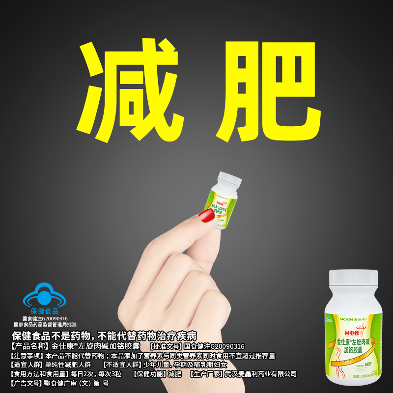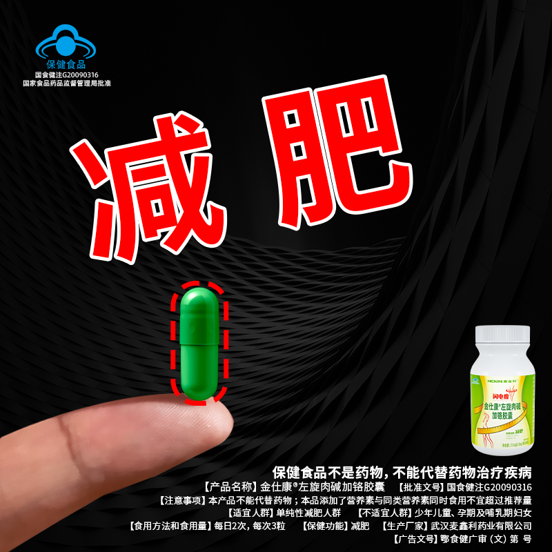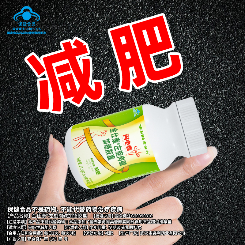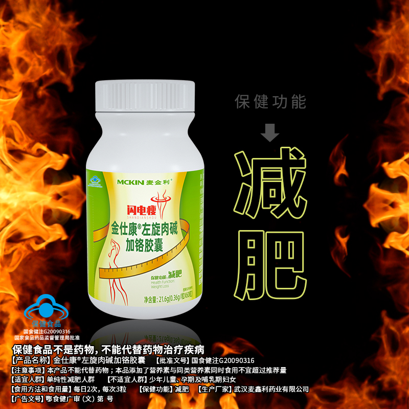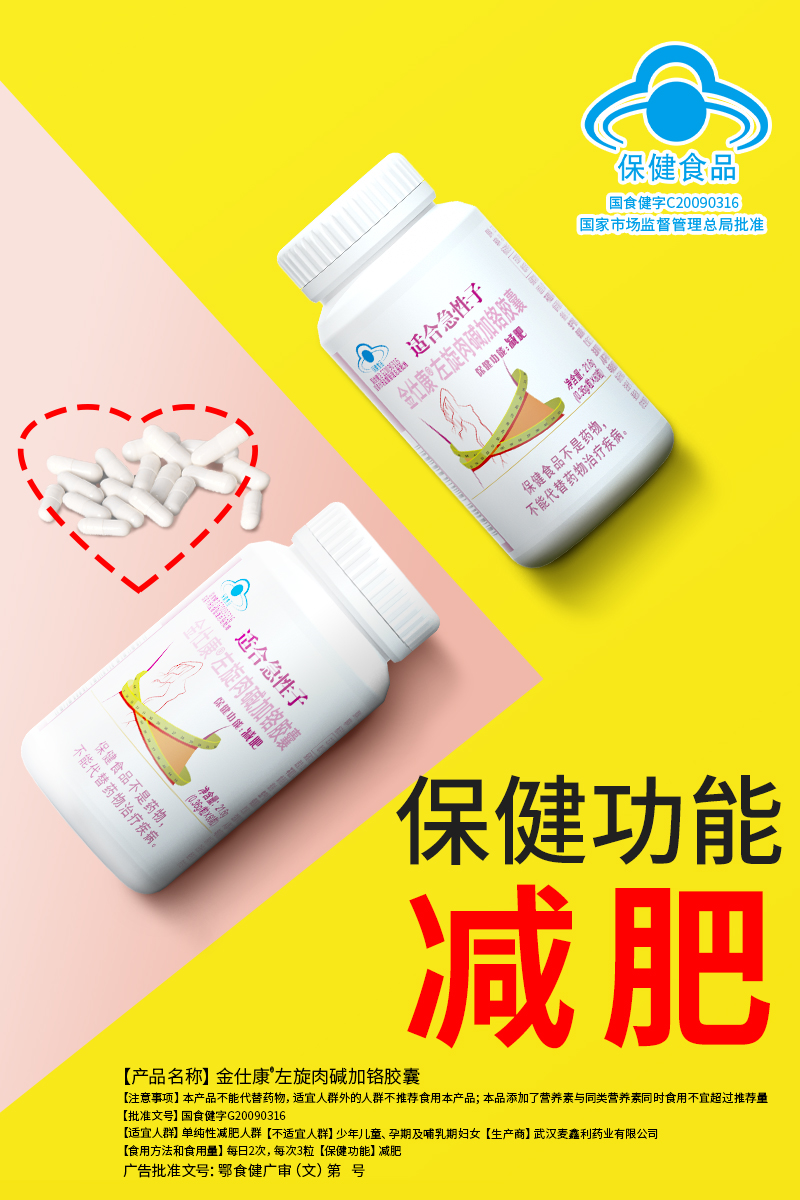 | 鄂食健广审(文)第221228-00469号 | 武汉麦鑫利药业有限公司 | 金仕康?左旋肉碱加铬胶囊 | 文 | 2022年12月28日 | 国食健注G20090316 | |