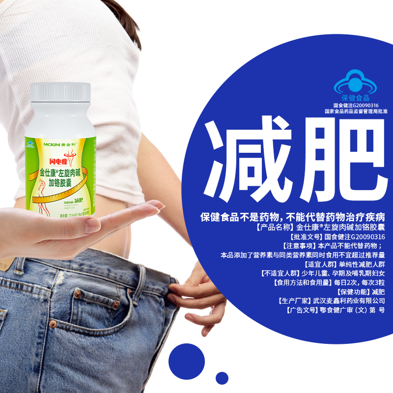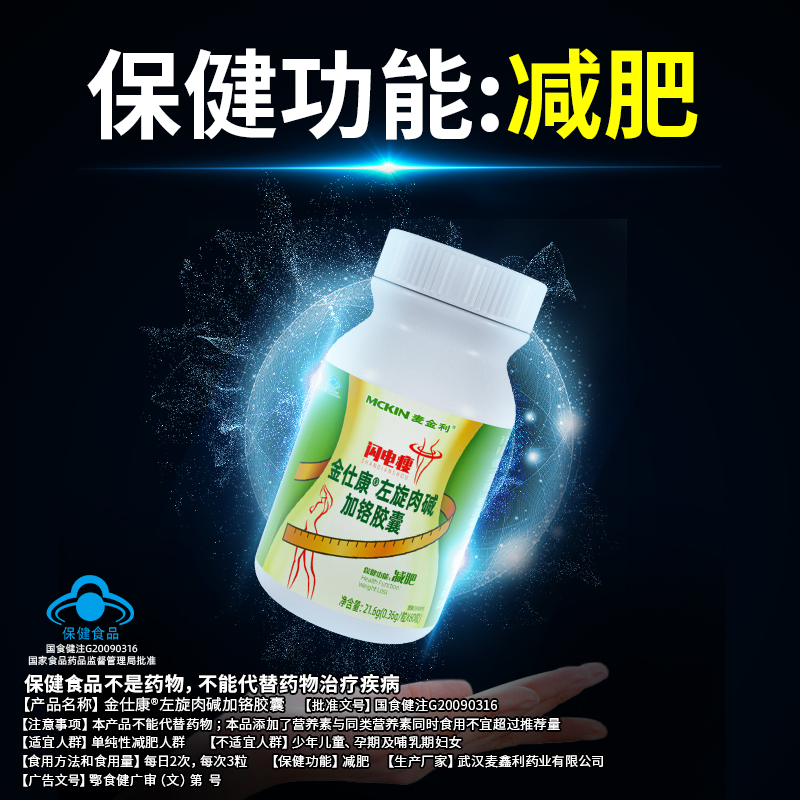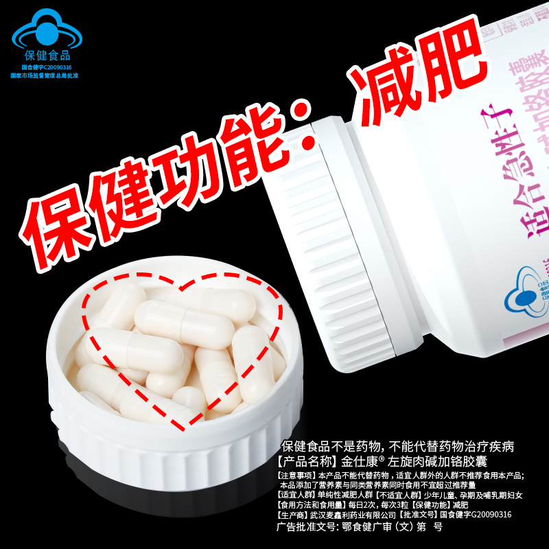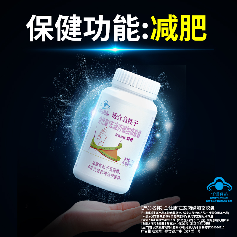| 鄂食健广审(文)第230114-00531号 | 武汉麦鑫利药业有限公司 | 金仕康?左旋肉碱加铬胶囊 | 文 | 2023年1月14日 | 国食健注G20090316 | |