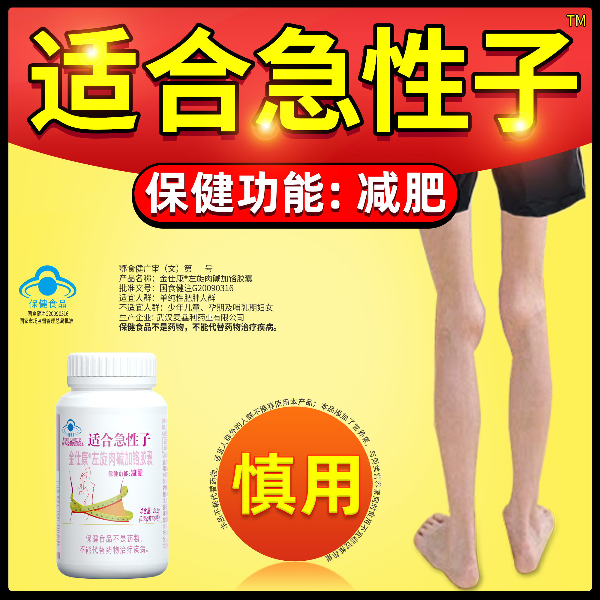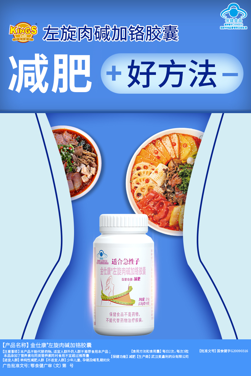| 鄂食健广审(文)第230114-00534号 | 武汉麦鑫利药业有限公司 | 金仕康?左旋肉碱加铬胶囊 | 文 | 2023年1月14日 | 国食健注G20090316 | |