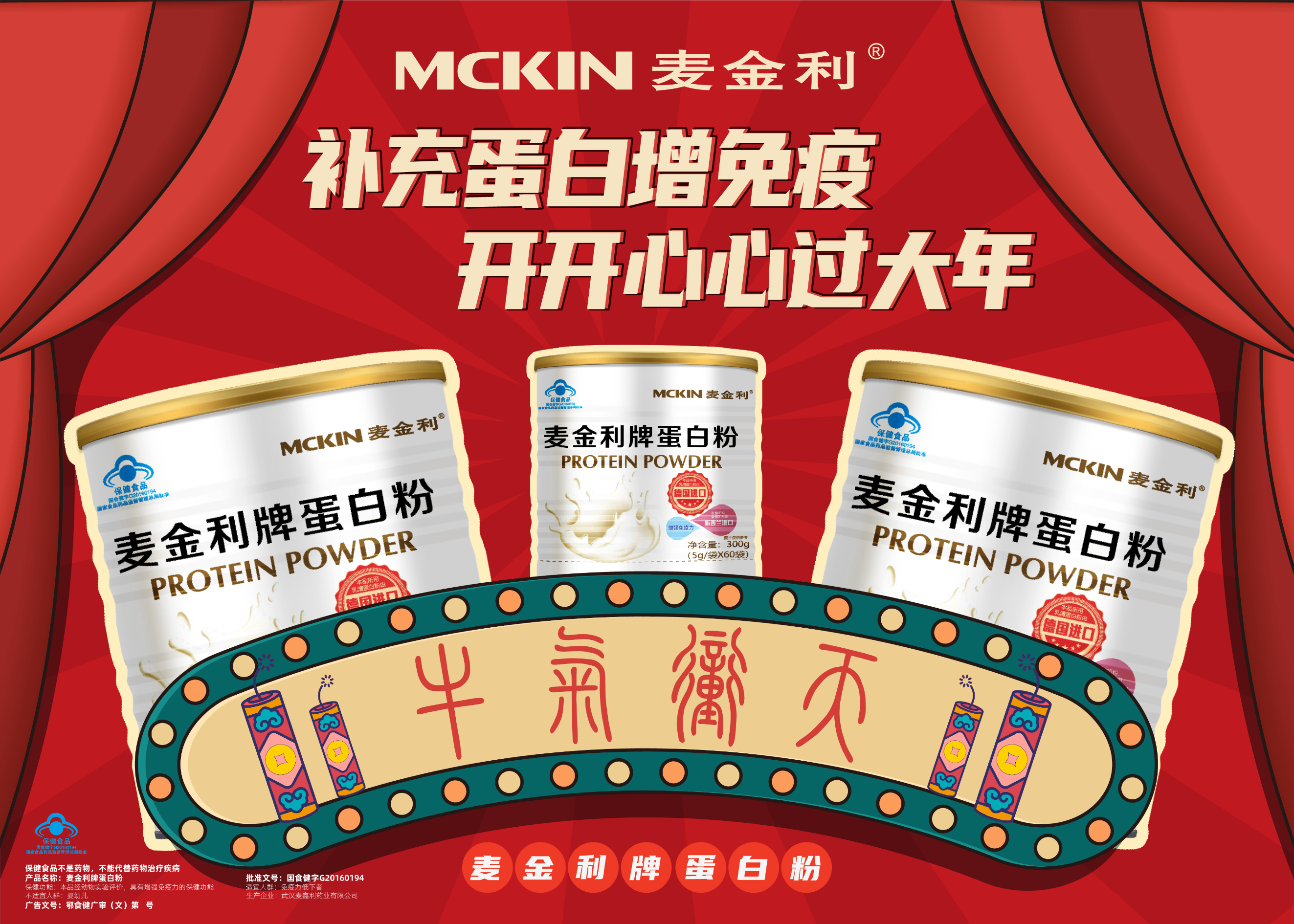 | 鄂食健广审(文)第230114-00540号 | 武汉麦鑫利药业有限公司 | 麦金利牌蛋白粉 | 文 | 2023年1月14日 | 国食健字G20160194 | |