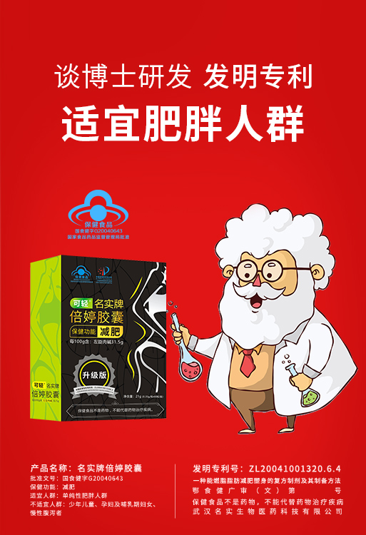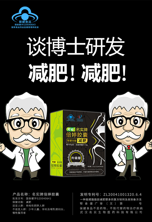 | 鄂食健广审(文)第230114-00498号 | 武汉名实生物医药科技有限责任公司 | 可轻 | 文 | 2023年1月14日 | 国食健字G20040643 | |