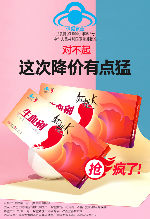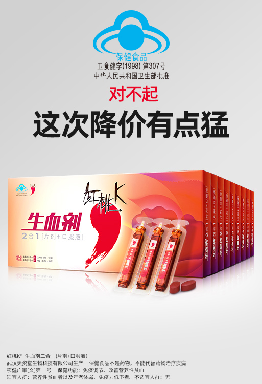 | 鄂食健广审(文)第221228-00480号 | 武汉天姿堂生物科技有限公司 | 生血剂二合一(片剂+口服液) | 文 | 2022年12月28日 | 卫食健字(1998)第307号 | |
