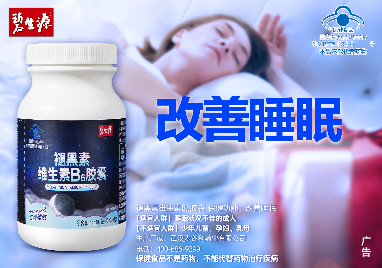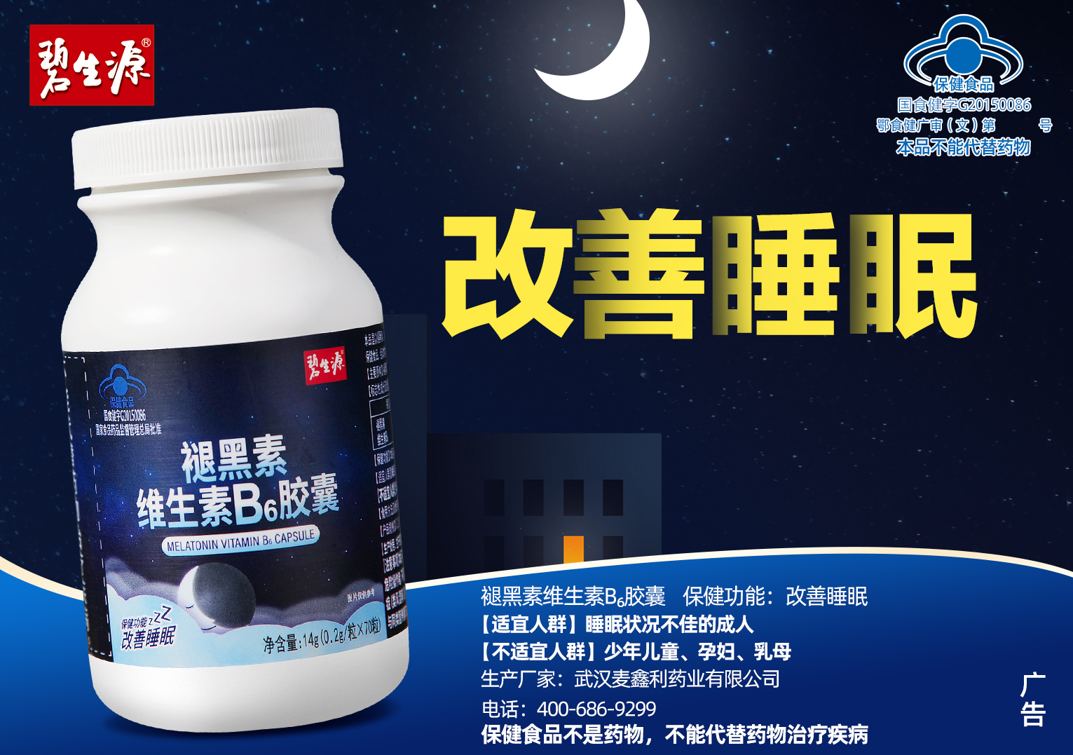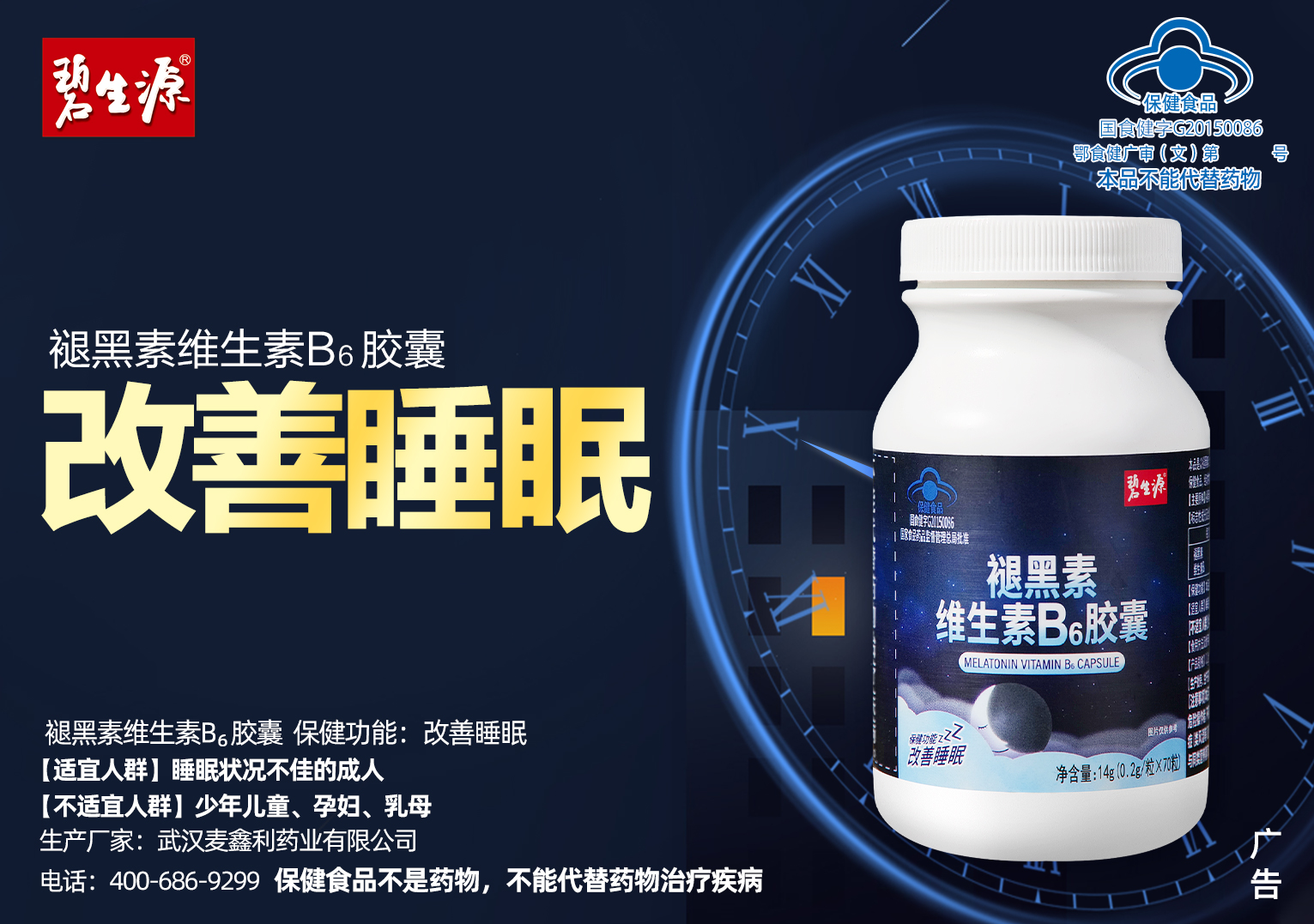 | 鄂食健广审(文)第221228-00468号 | 武汉麦鑫利药业有限公司 | 褪黑素维生素B6胶囊 | 文 | 2022年12月28日 | 国食健字G20150086 | |