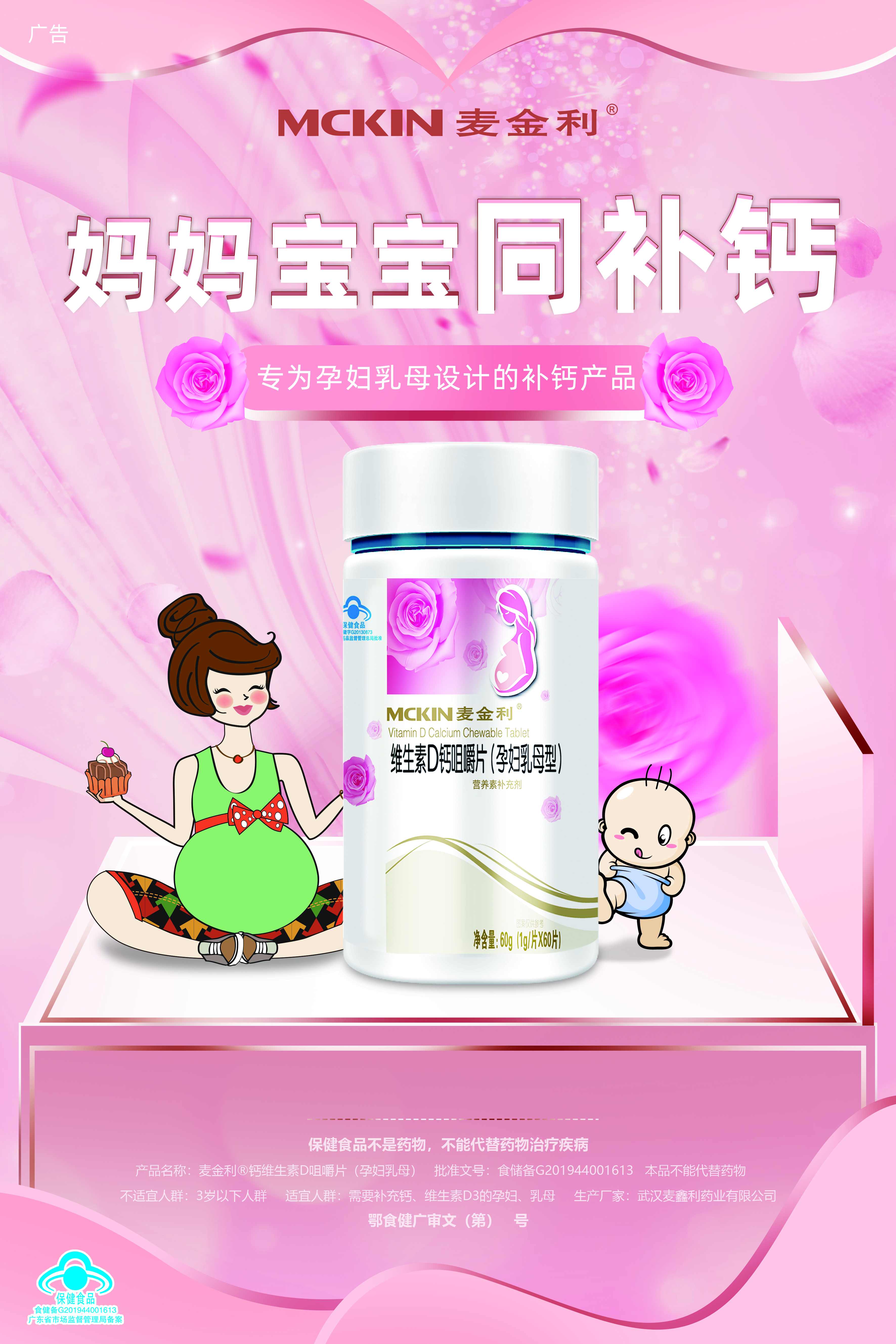 | 鄂食健广审(文)第221221-00454号 | 武汉麦鑫利药业有限公司 | 维生素D钙咀嚼片(孕妇乳母型) | 文 | 2022年12月21日 | 国食健字G20130873 | |