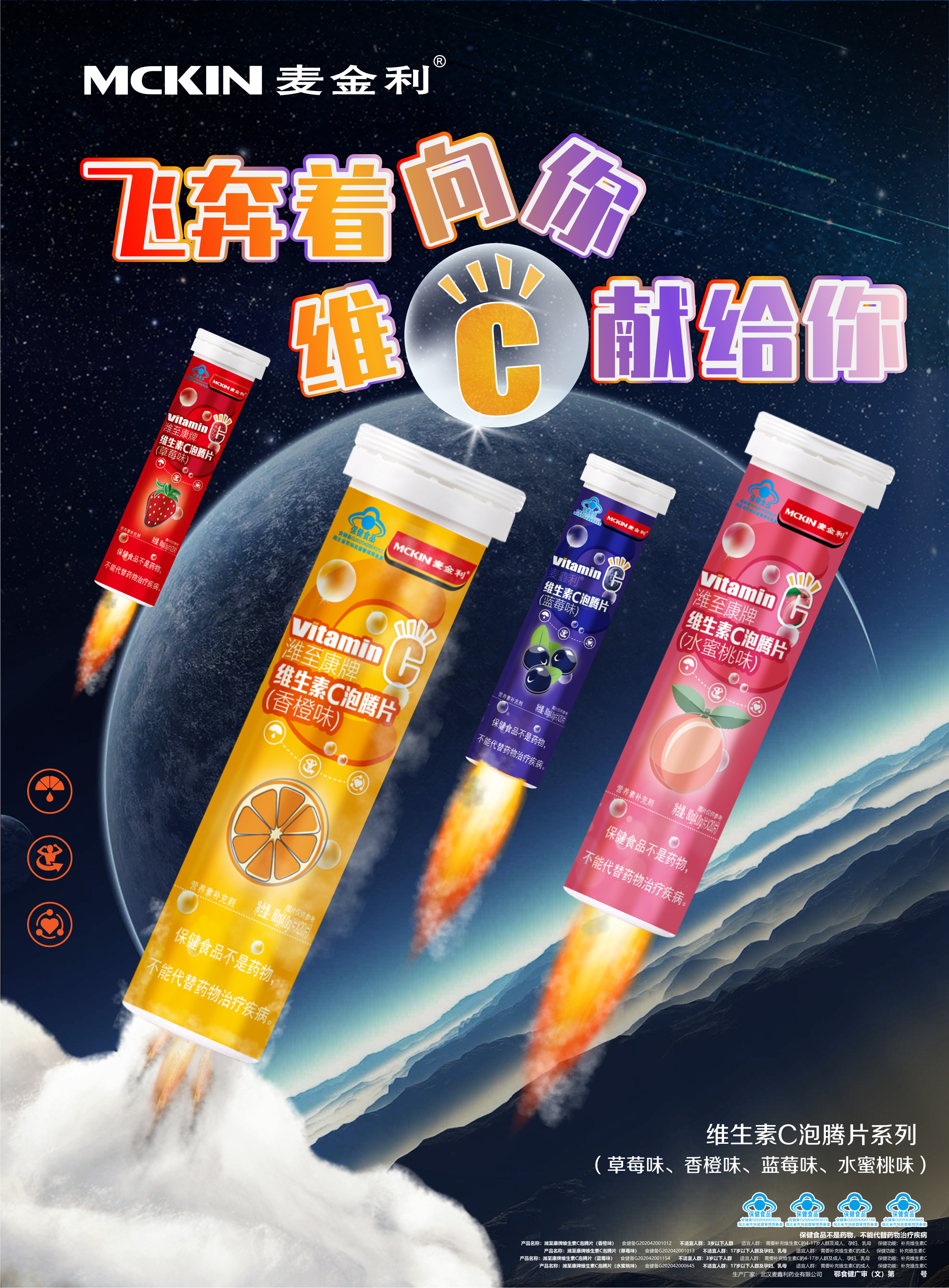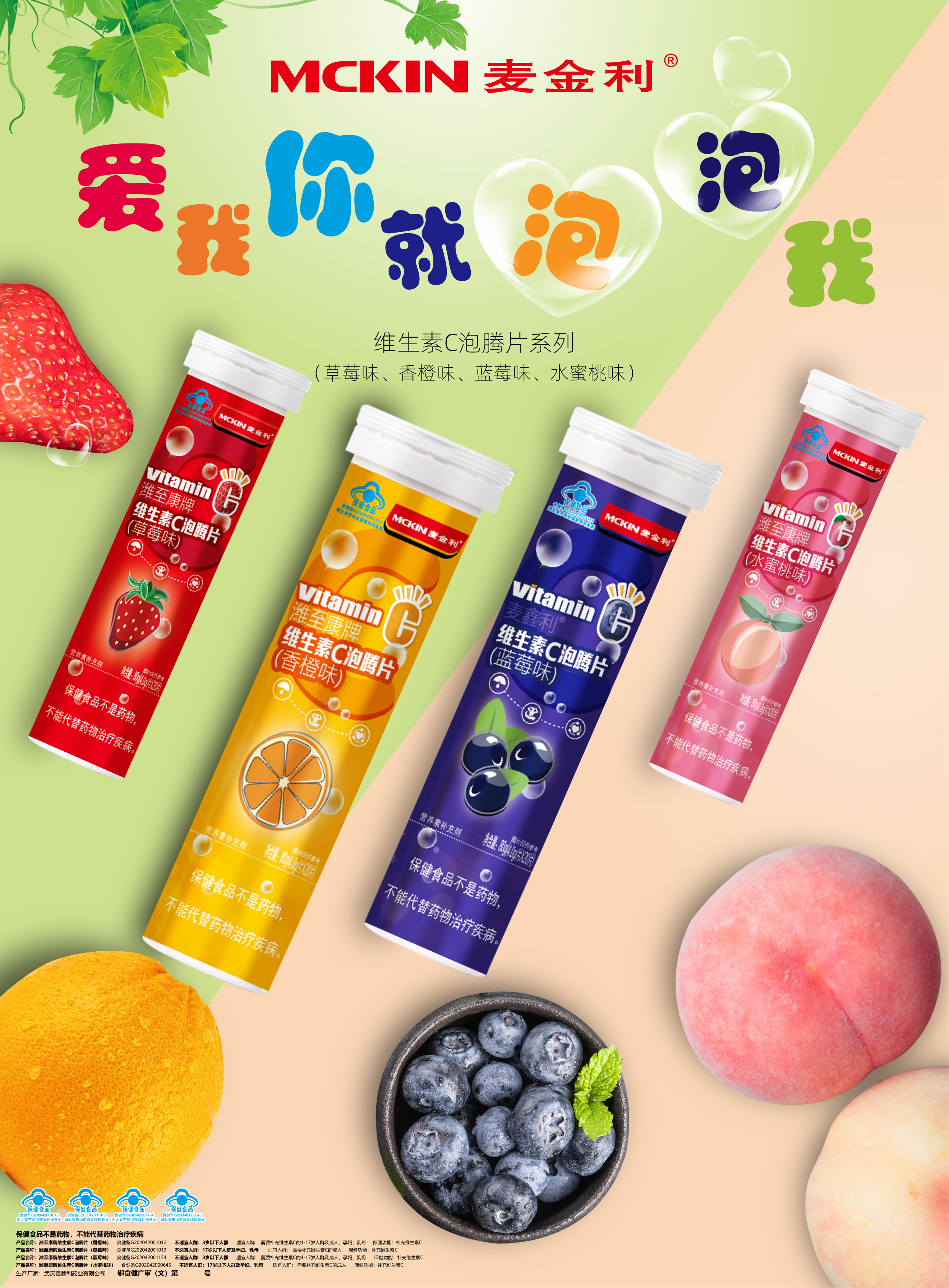 | 鄂食健广审(文)第221221-00452号 | 武汉麦鑫利药业有限公司 | 潍至康牌维生素C泡腾片(草莓味)、潍至康牌维生素C泡腾片(蓝莓味)、潍至康牌维生素C泡腾片(香橙味)、潍至康牌维生素C泡腾片(水蜜桃味) | 文 | 2022年12月21日 | 食健备G202042001013、食健备G202042001015、食健备G202042001012、食健备G202042000645 | |