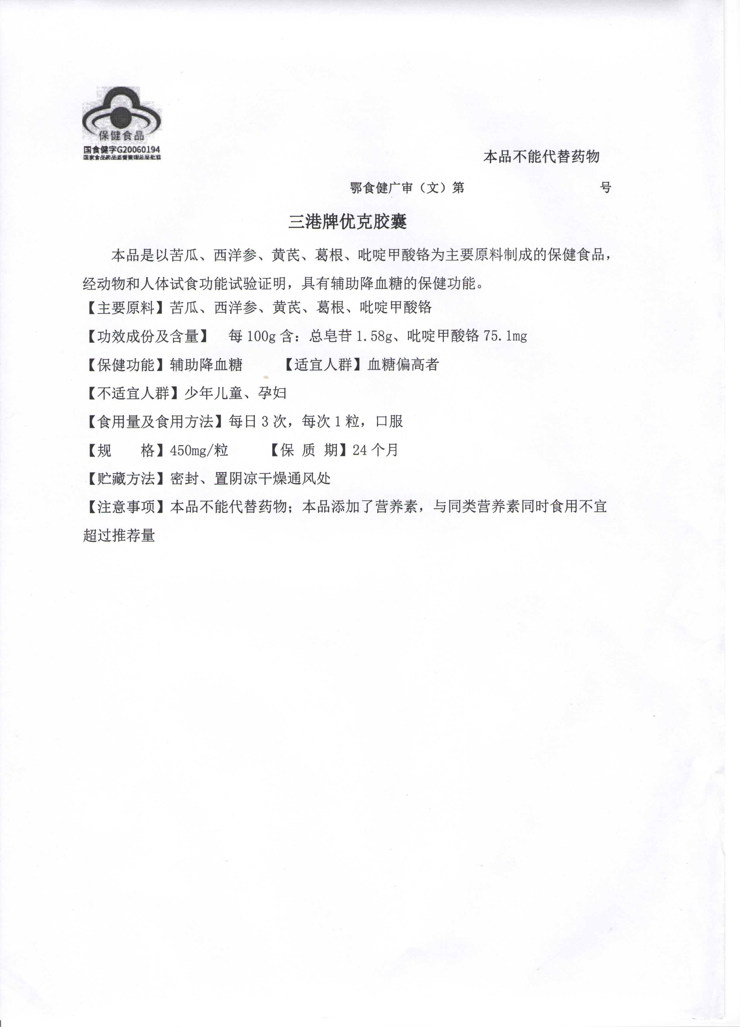 | 鄂食健广审(文)第230114-00520号 | 武汉麦鑫利药业有限公司 | 金仕康?左旋肉碱加铬胶囊 | 文 | 2023年1月14日 | 国食健注G20090316 | |
