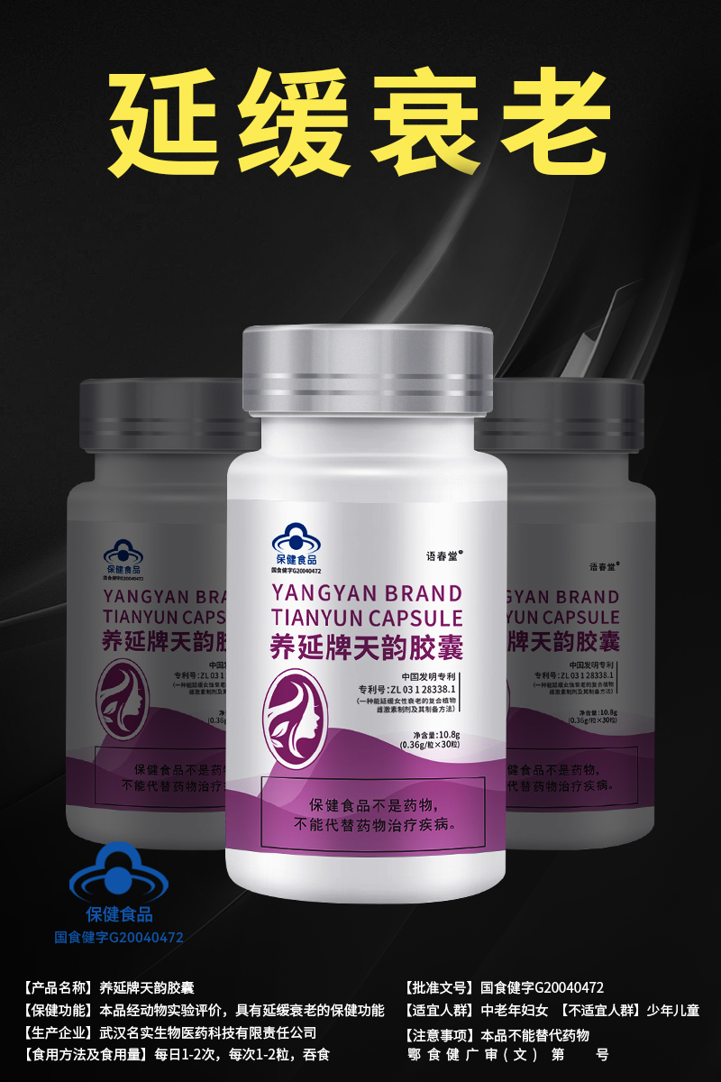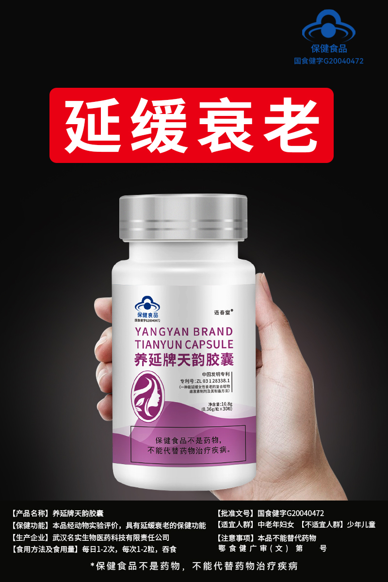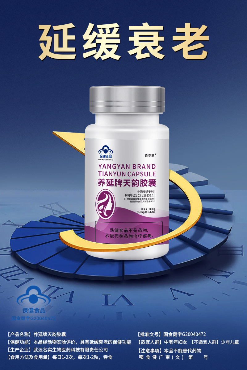 | 国食健字G20040472 | 武汉名实生物医药科技有限责任公司 | 养延牌 | 文 | 鄂食健广审(文)第240818-02522号 | 2024年8月18日 | |