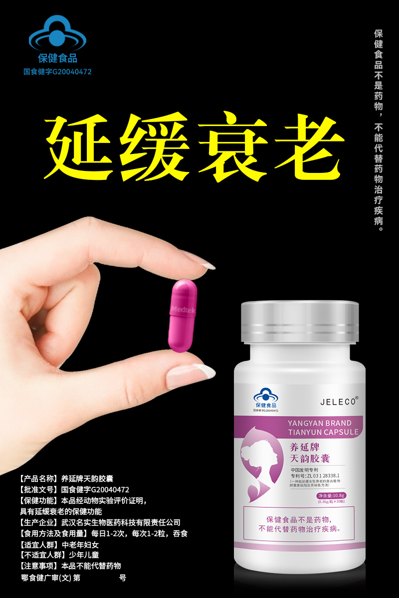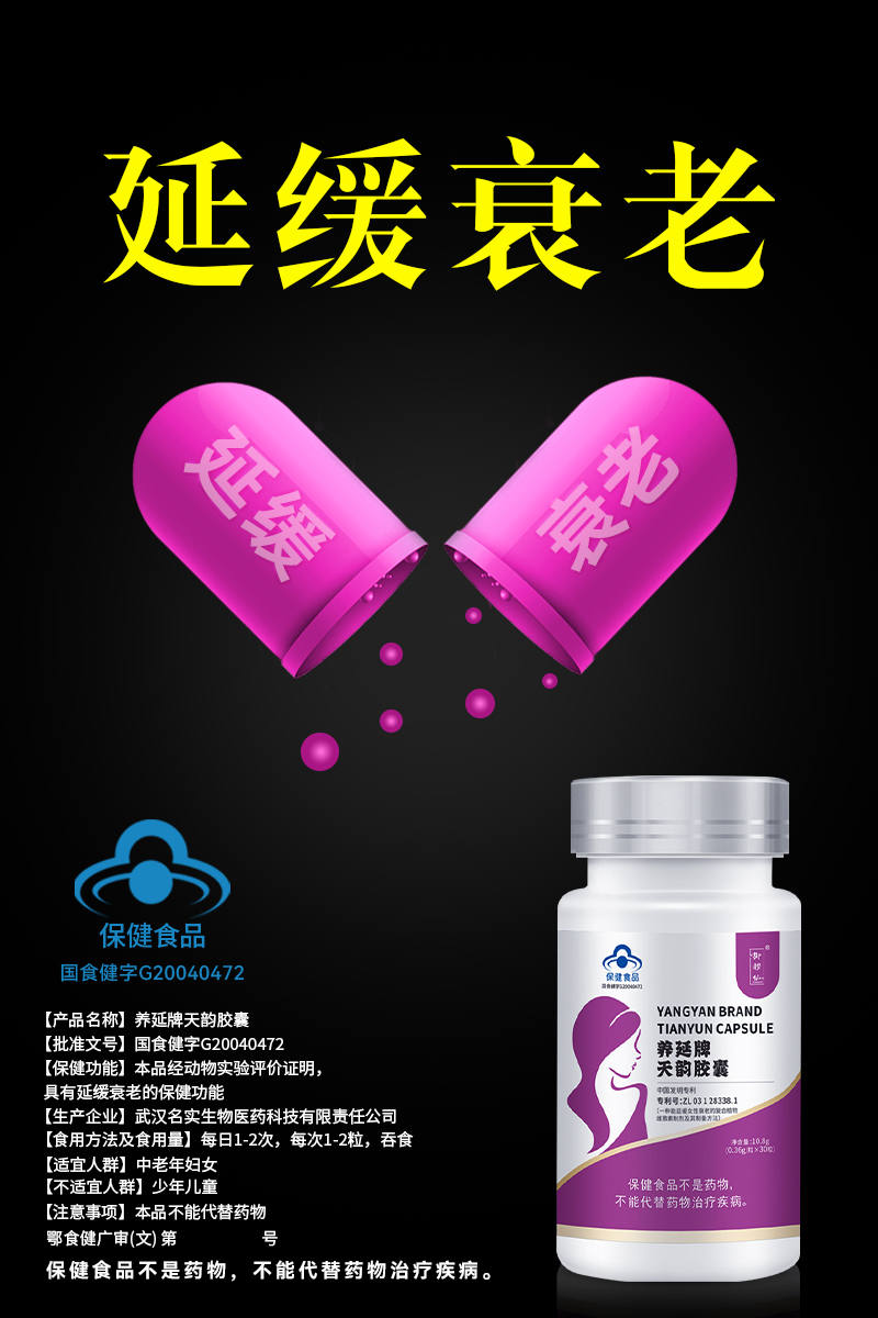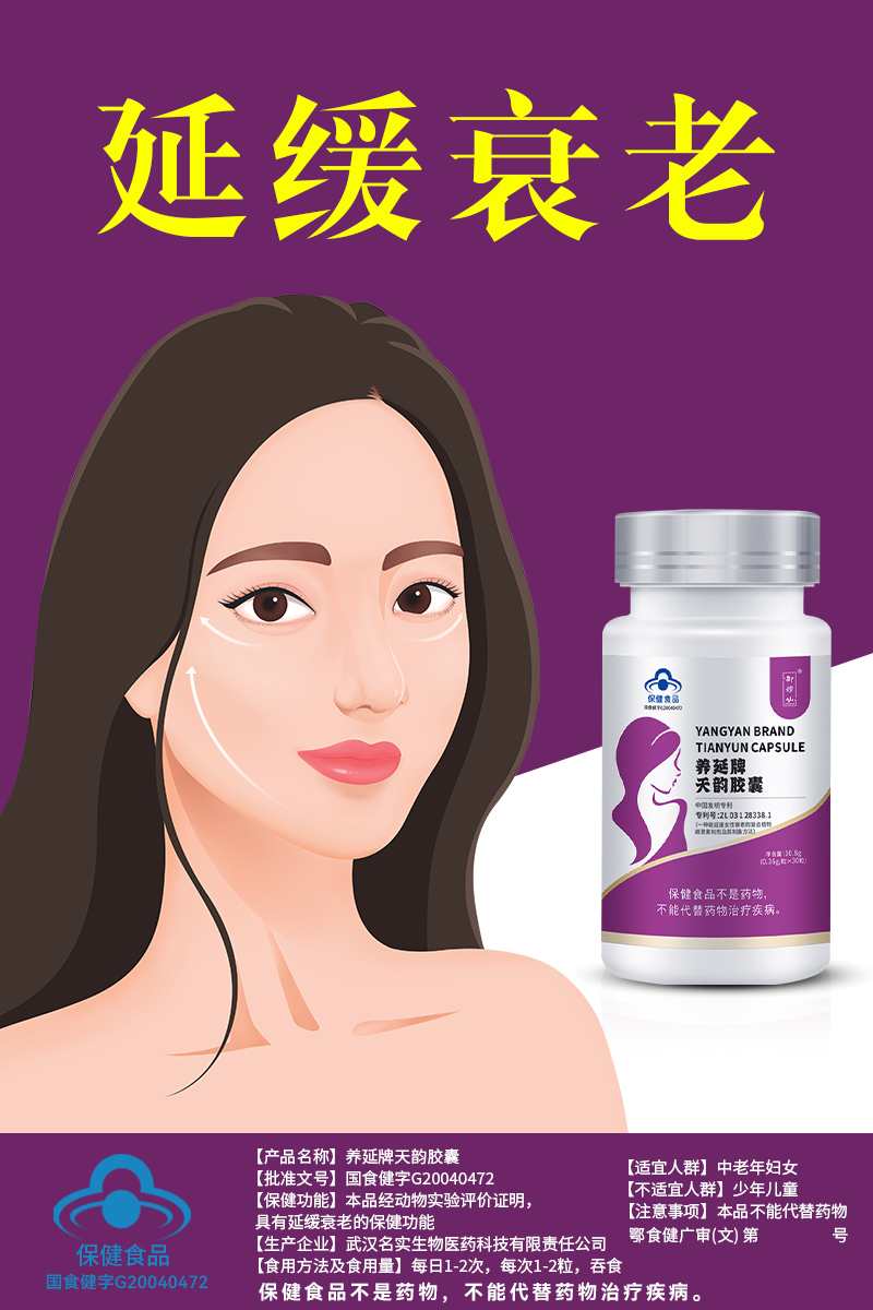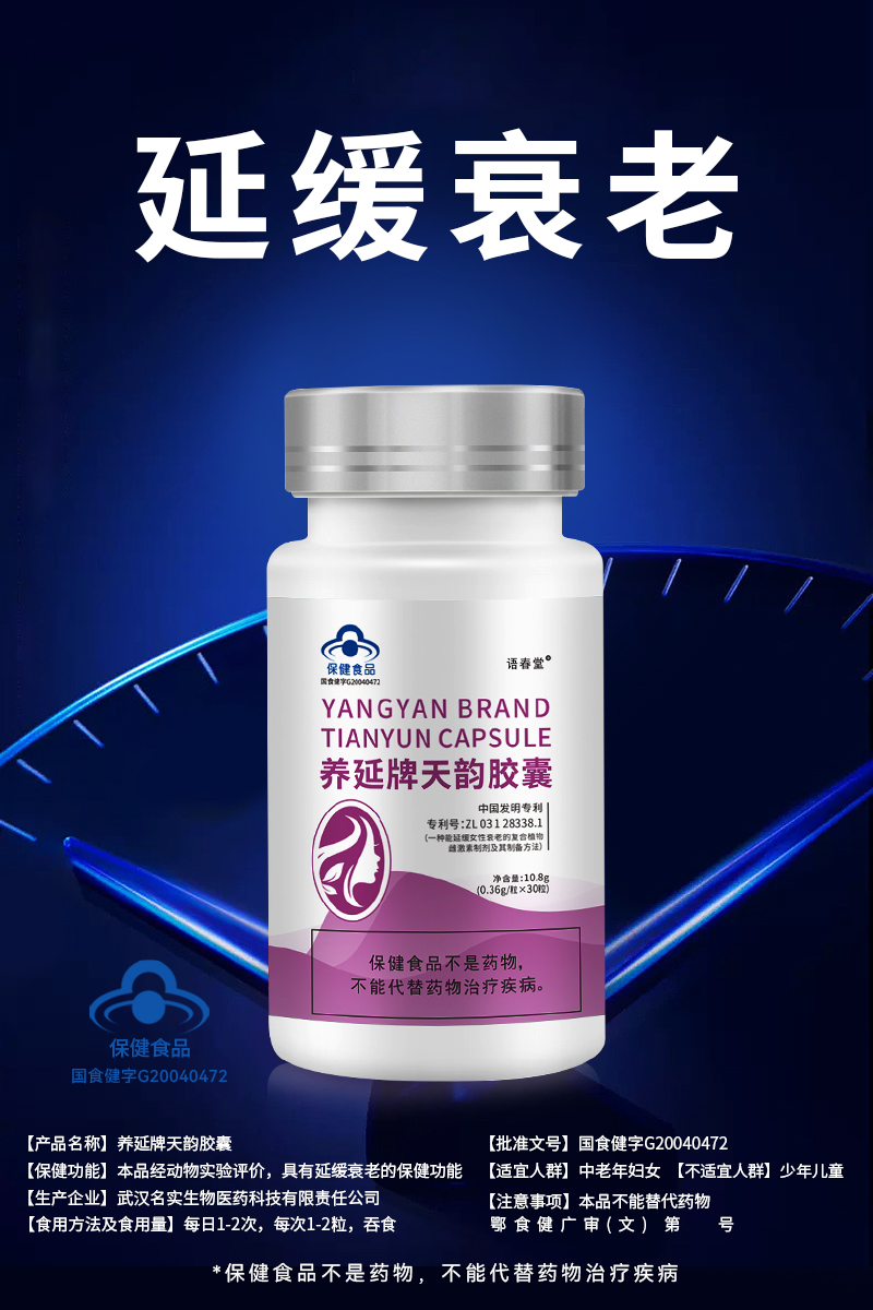 | 国食健字G20040472 | 武汉名实生物医药科技有限责任公司 | 养延牌 | 文 | 鄂食健广审(文)第240818-02522号 | 2024年8月18日 | |