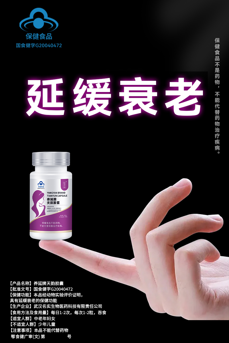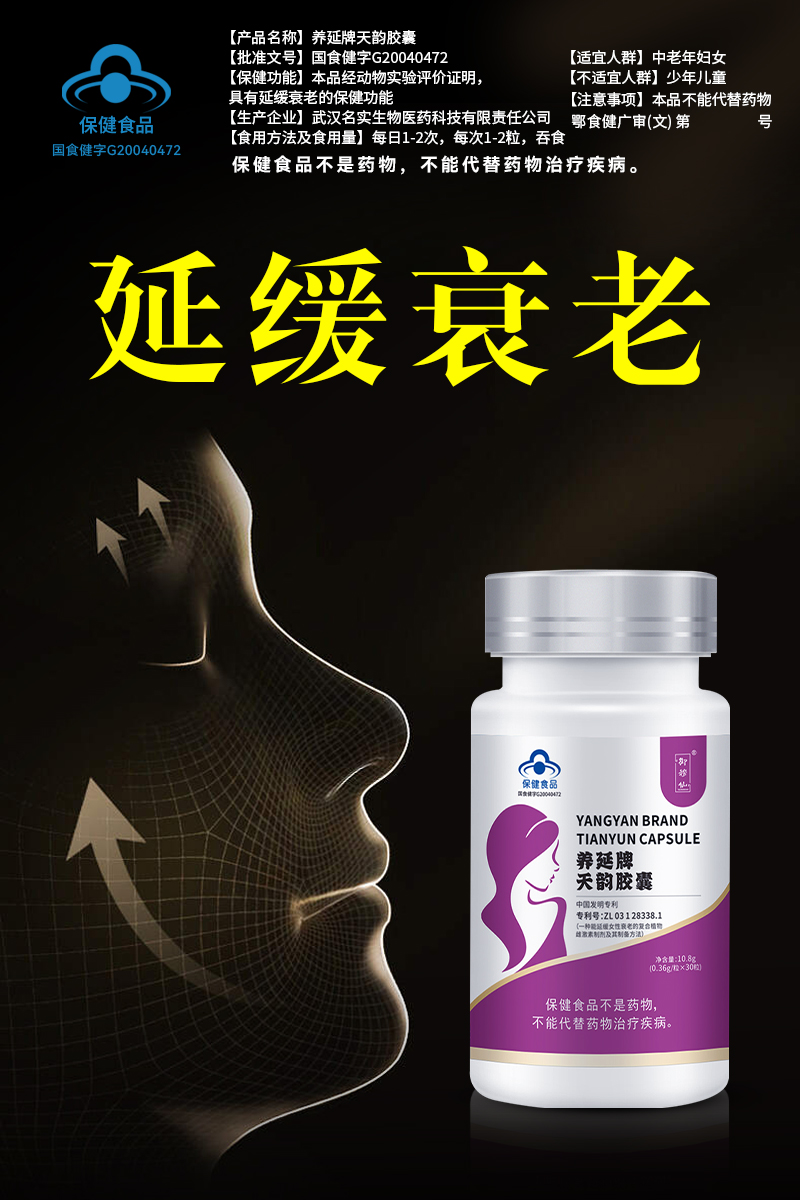 | 国食健字G20040472 | 武汉名实生物医药科技有限责任公司 | 养延牌 | 文 | 鄂食健广审(文)第240818-02511号 | 2024年8月18日 | |