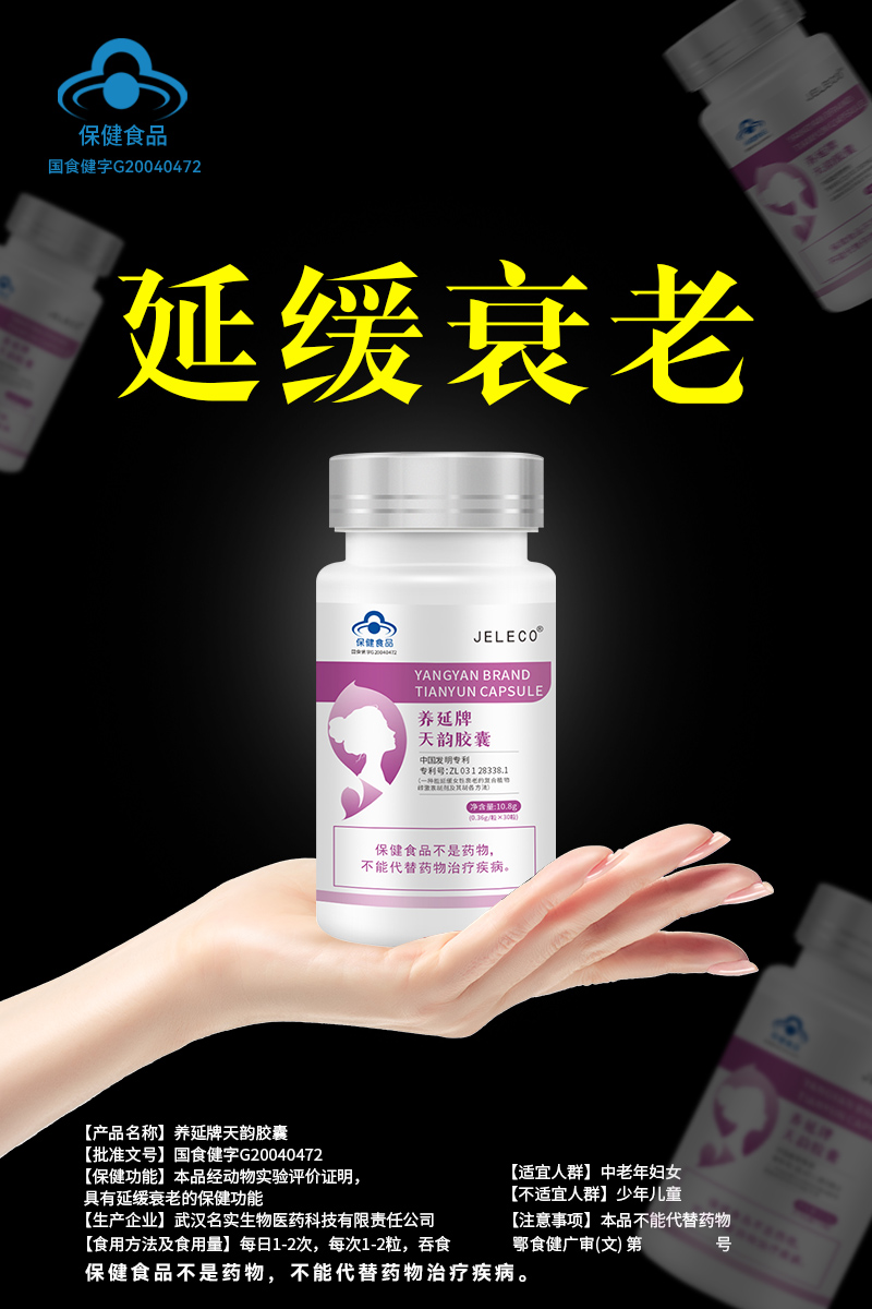 | 国食健字G20040472 | 武汉名实生物医药科技有限责任公司 | 养延牌 | 文 | 鄂食健广审(文)第240818-02518号 | 2024年8月18日 | |
