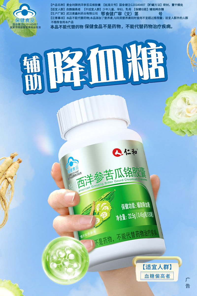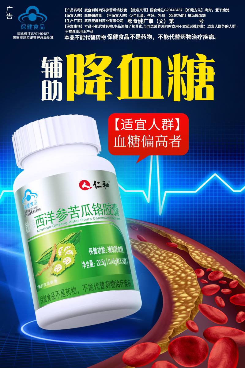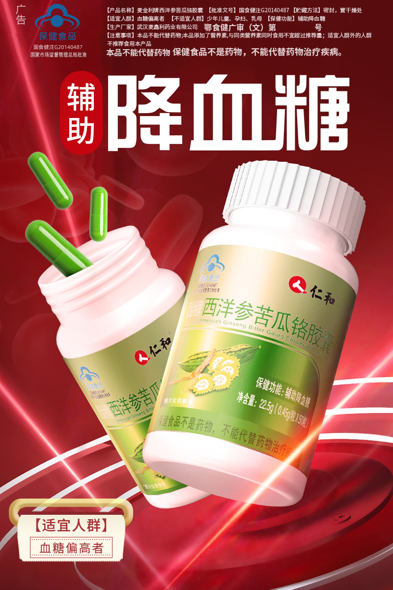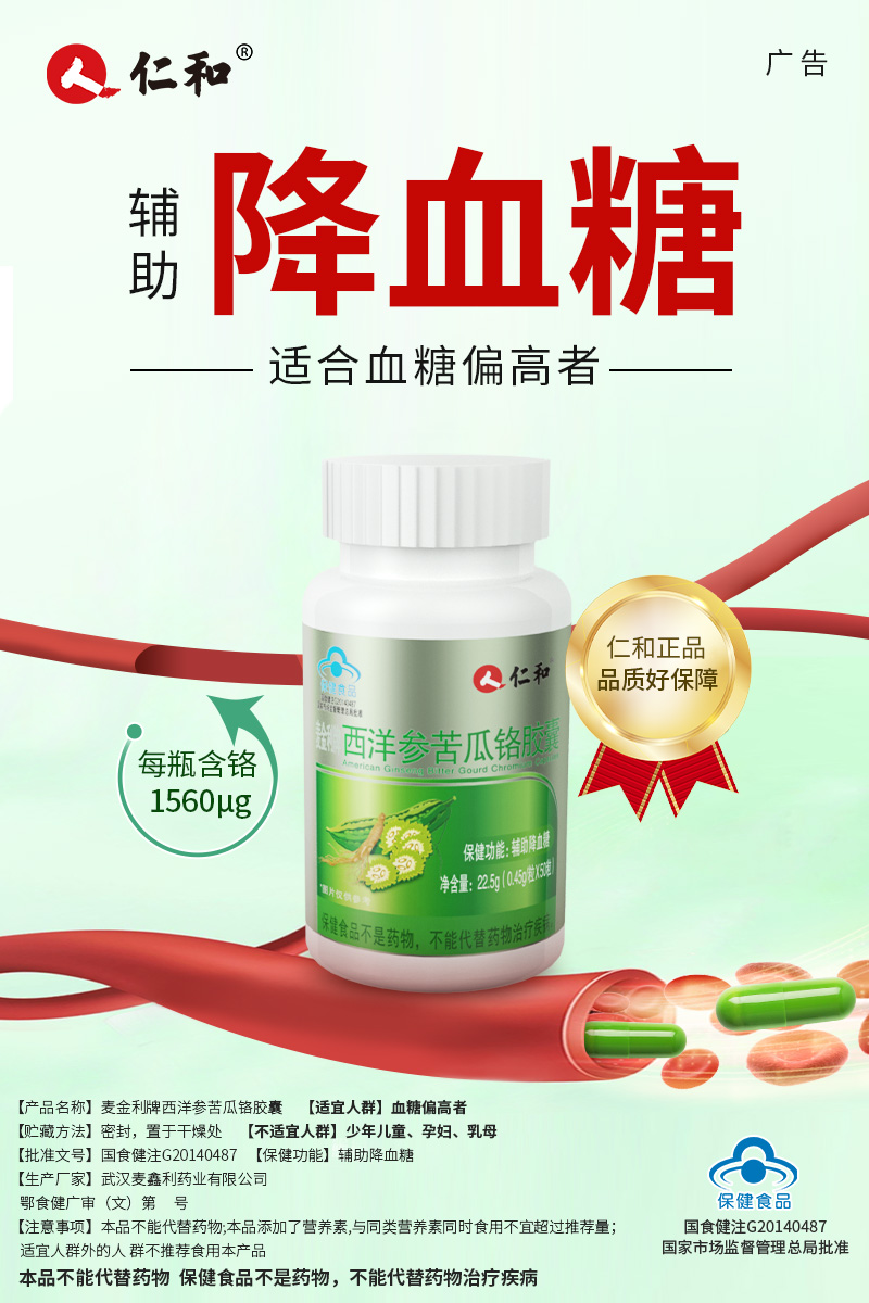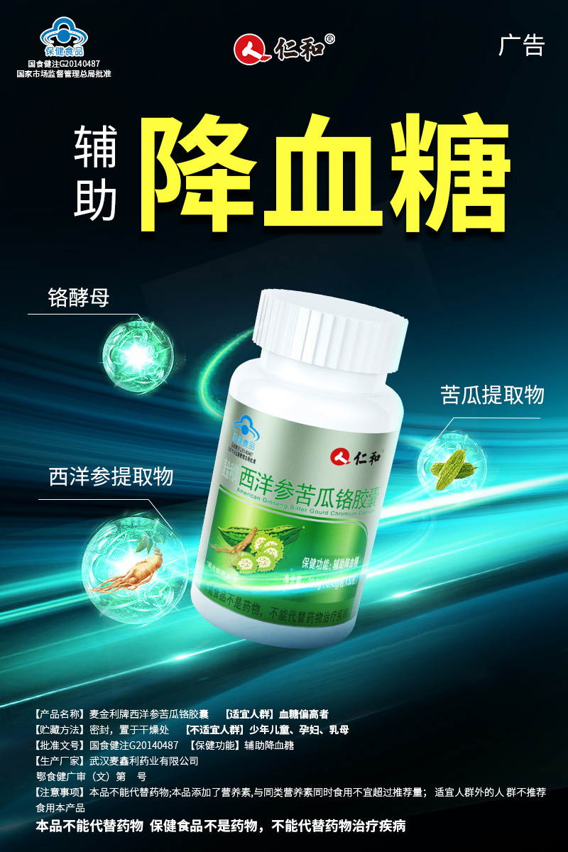 | 国食健注G20140487 | 武汉麦鑫利药业有限公司 | 麦金利牌西洋参苦瓜铬胶囊 | 文 | 鄂食健广审(文)第240816-02483号 | 2024年8月16日 | |