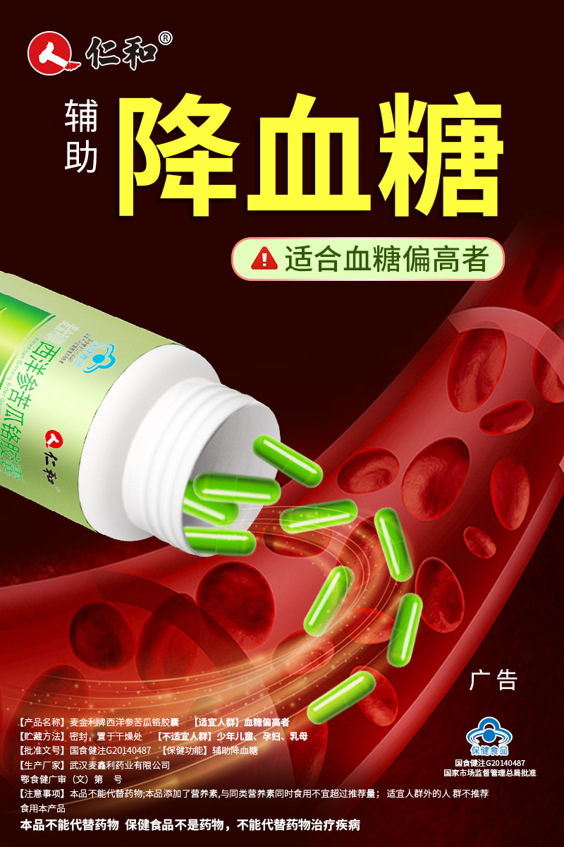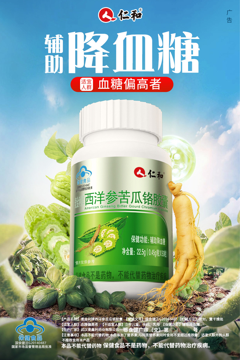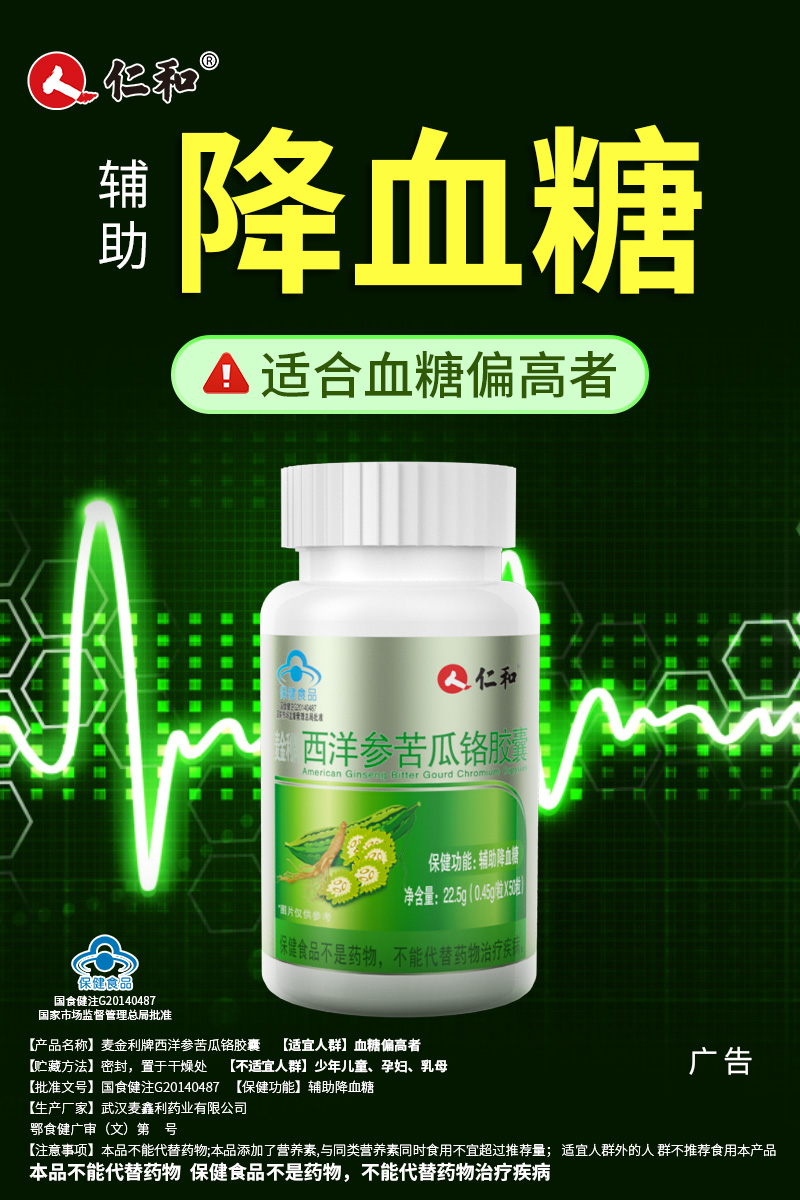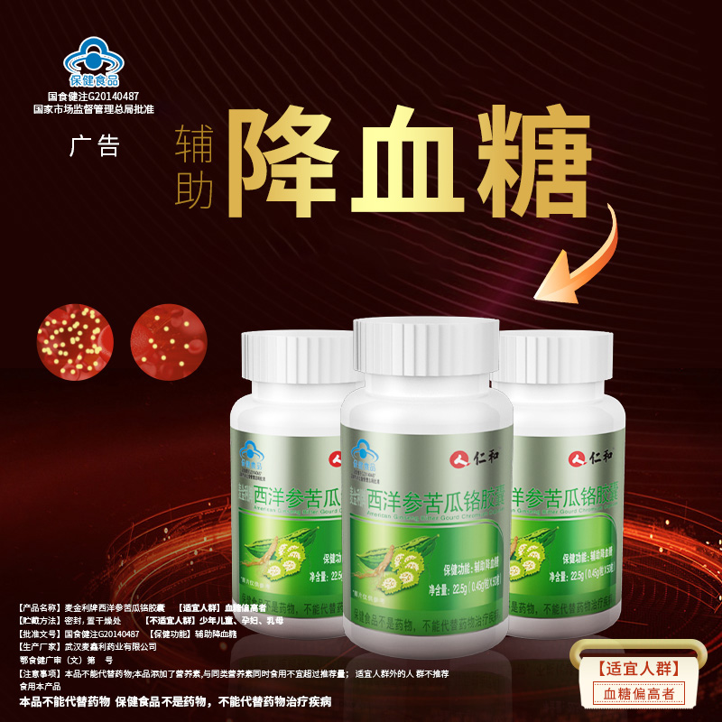 | 国食健注G20140487 | 武汉麦鑫利药业有限公司 | 麦金利牌西洋参苦瓜铬胶囊 | 文 | 鄂食健广审(文)第240816-02485号 | 2024年8月16日 | |