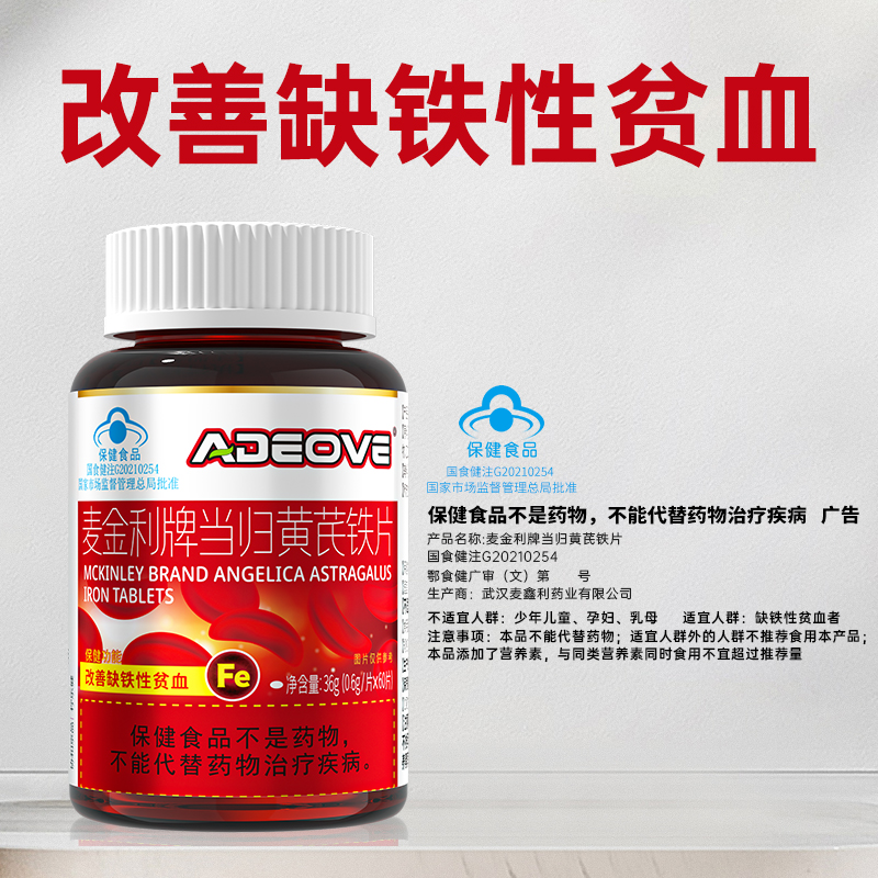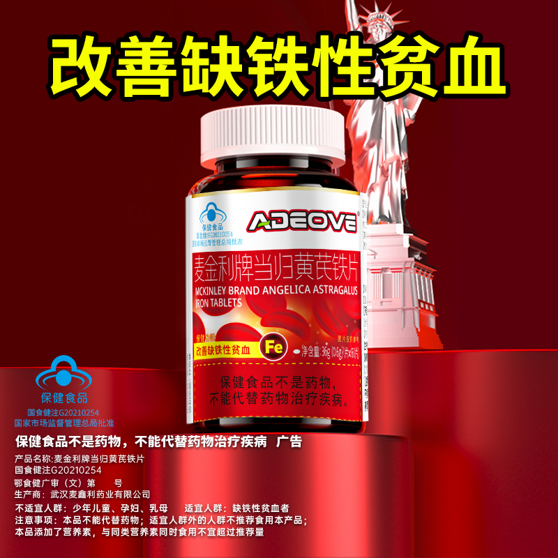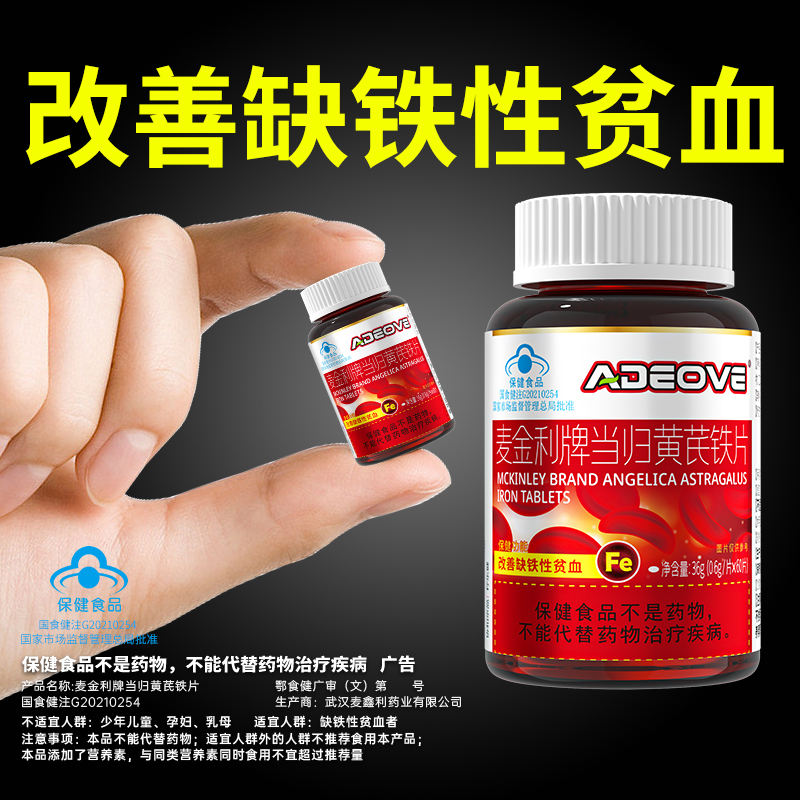 | 国食健注G20210254 | 武汉麦鑫利药业有限公司 | 麦金利牌当归黄芪铁片 | 文 | 鄂食健广审(文)第240816-02479号 | 2024年8月16日 | |