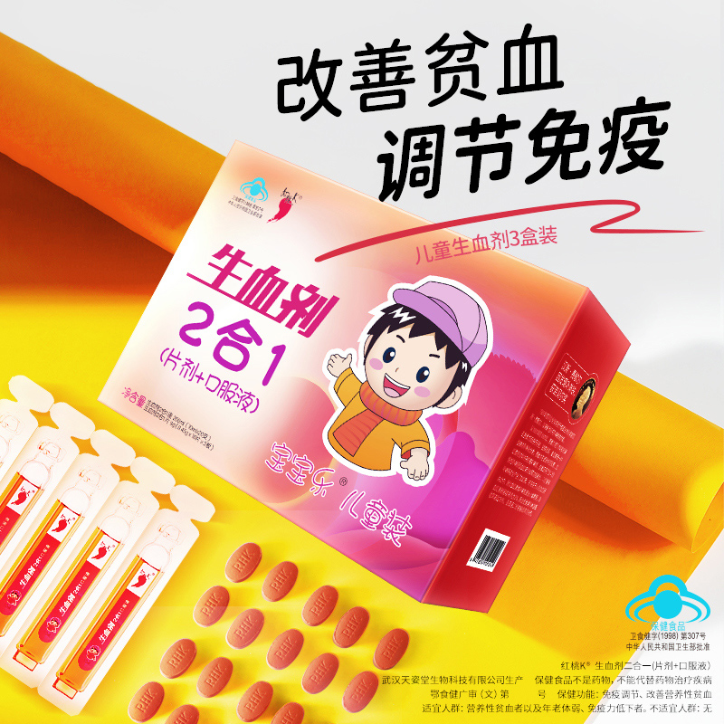 | 卫食健字(1998)第307号 | 武汉天姿堂生物科技有限公司 | 生血剂二合一(片剂+口服液) | 文 | 鄂食健广审(文)第240816-02459号 | 2024年8月16日 | |