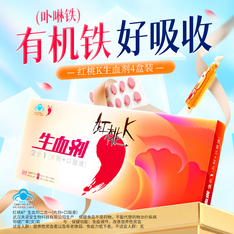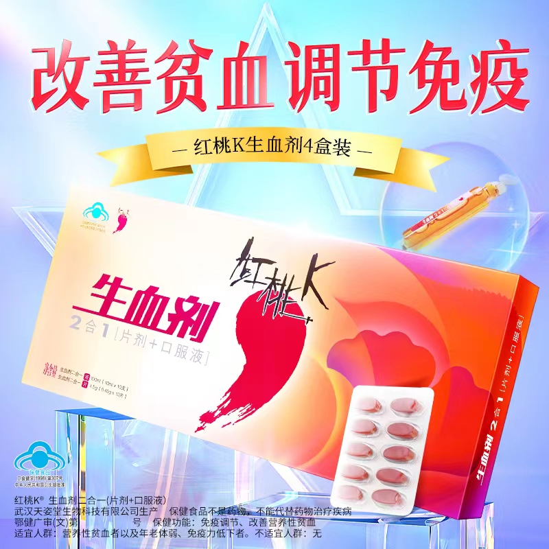 | 卫食健字(1998)第307号 | 武汉天姿堂生物科技有限公司 | 生血剂二合一(片剂+口服液) | 文 | 鄂食健广审(文)第240816-02466号 | 2024年8月16日 | |