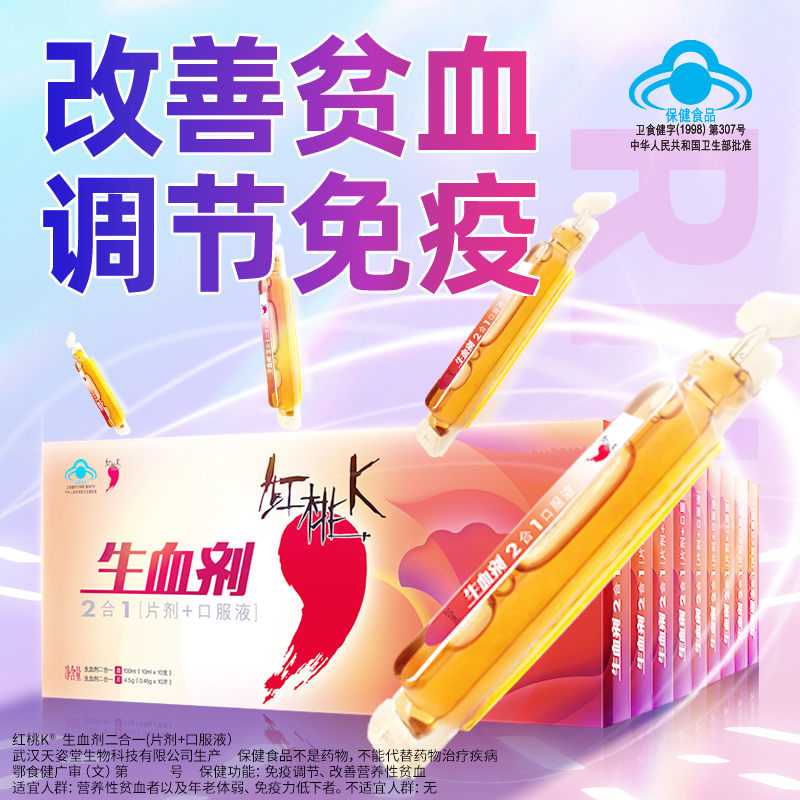 | 卫食健字(1998)第307号 | 武汉天姿堂生物科技有限公司 | 生血剂二合一(片剂+口服液) | 文 | 鄂食健广审(文)第240816-02460号 | 2024年8月16日 | |