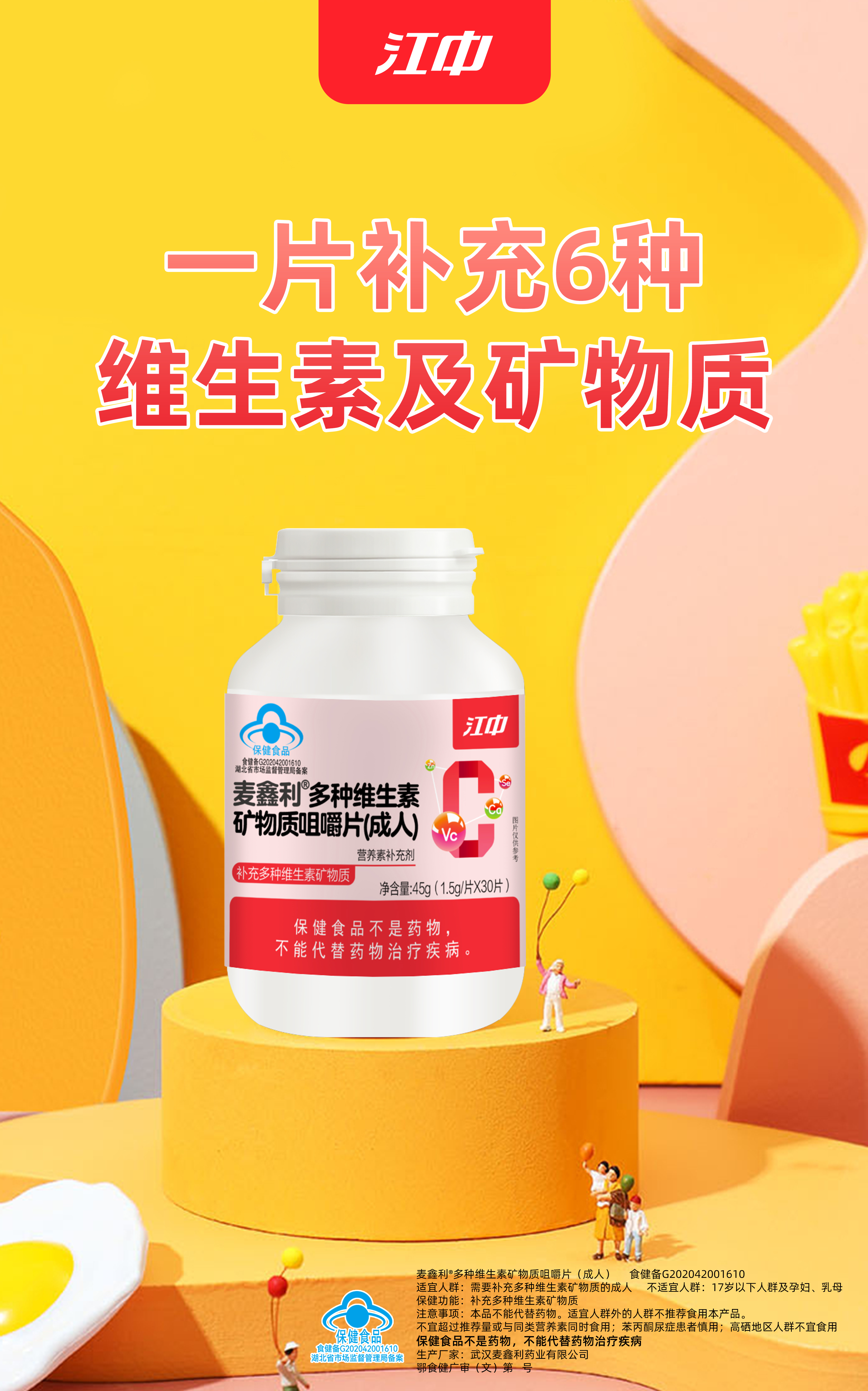 | 食健备G202042001610 | 武汉麦鑫利药业有限公司 | 麦鑫利?多种维生素矿物质咀嚼片(成人) | 文 | 鄂食健广审(文)第240807-02308号 | 2024年8月7日 | |