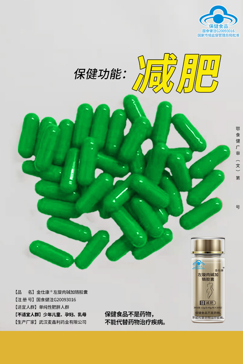 | 国食健注G20090316 | 武汉麦鑫利药业有限公司 | 金仕康?左旋肉碱加铬胶囊 | 文 | 鄂食健广审(文)第240807-02291号 | 2024年8月7日 | |