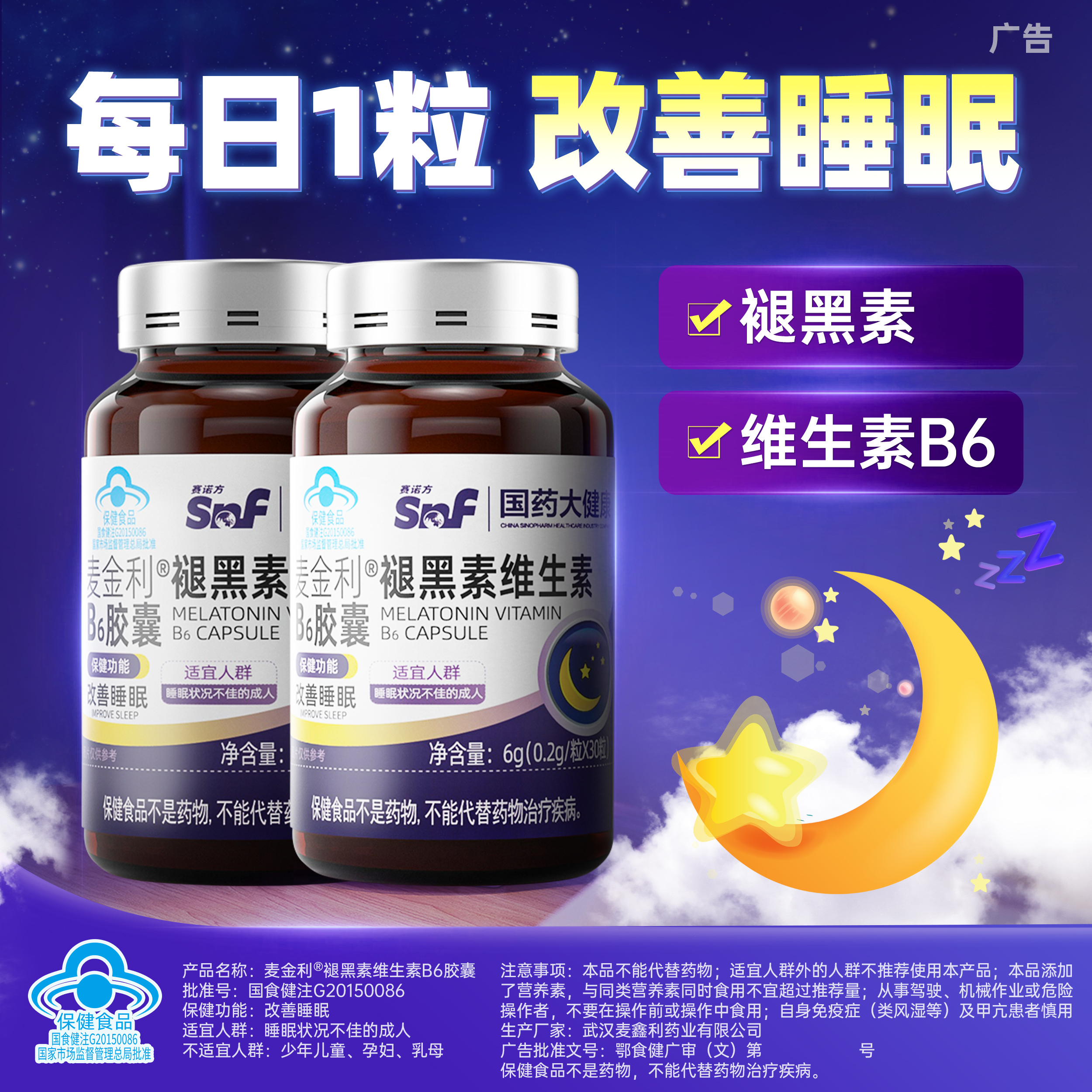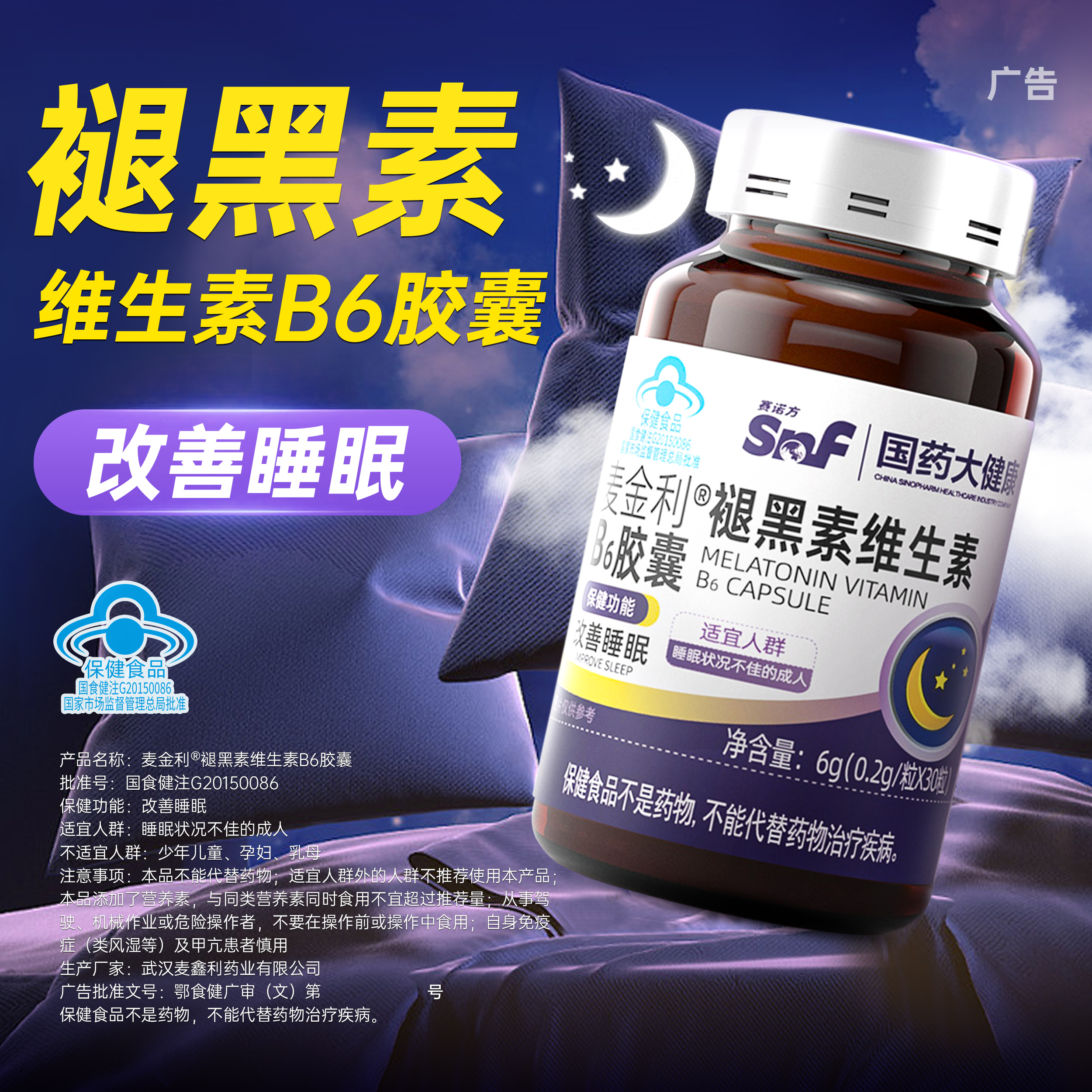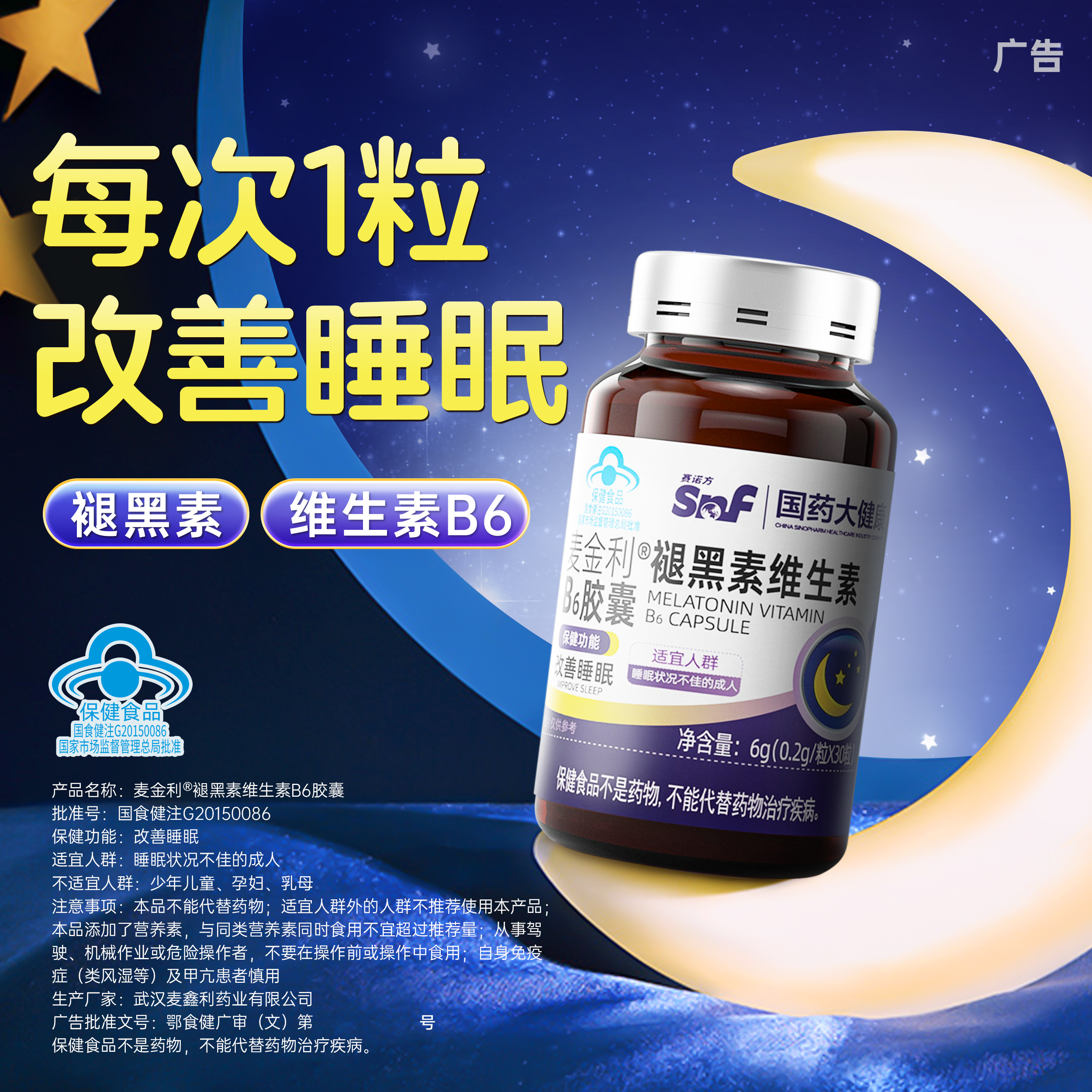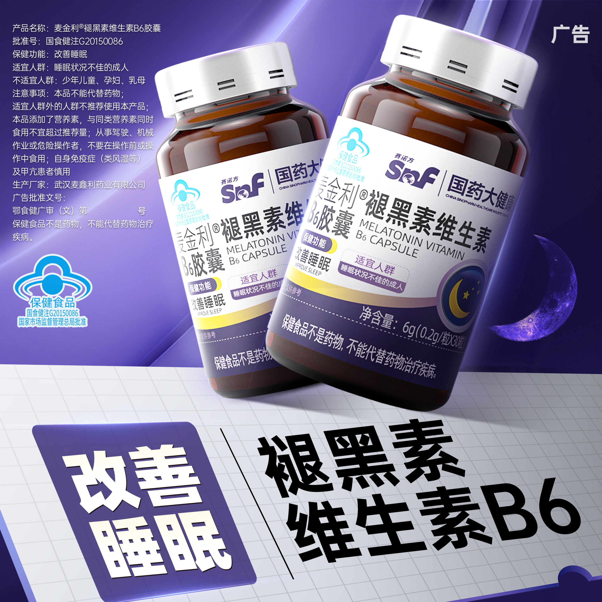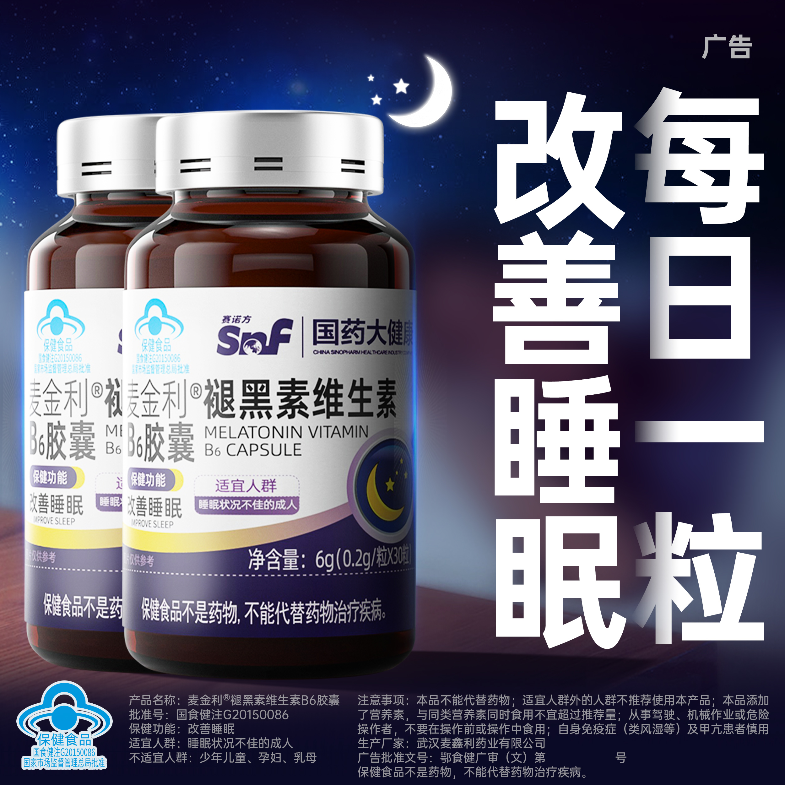 | 国食健注G20150086 | 武汉麦鑫利药业有限公司 | 麦金利 褪黑素维生素B6胶囊 | 文 | 鄂食健广审(文)第250213-03504号 | 2025年2月13日 | |