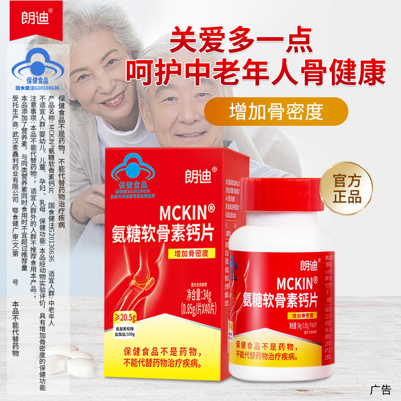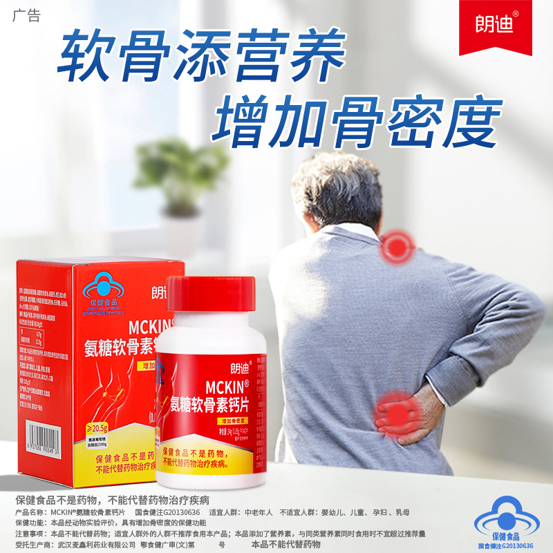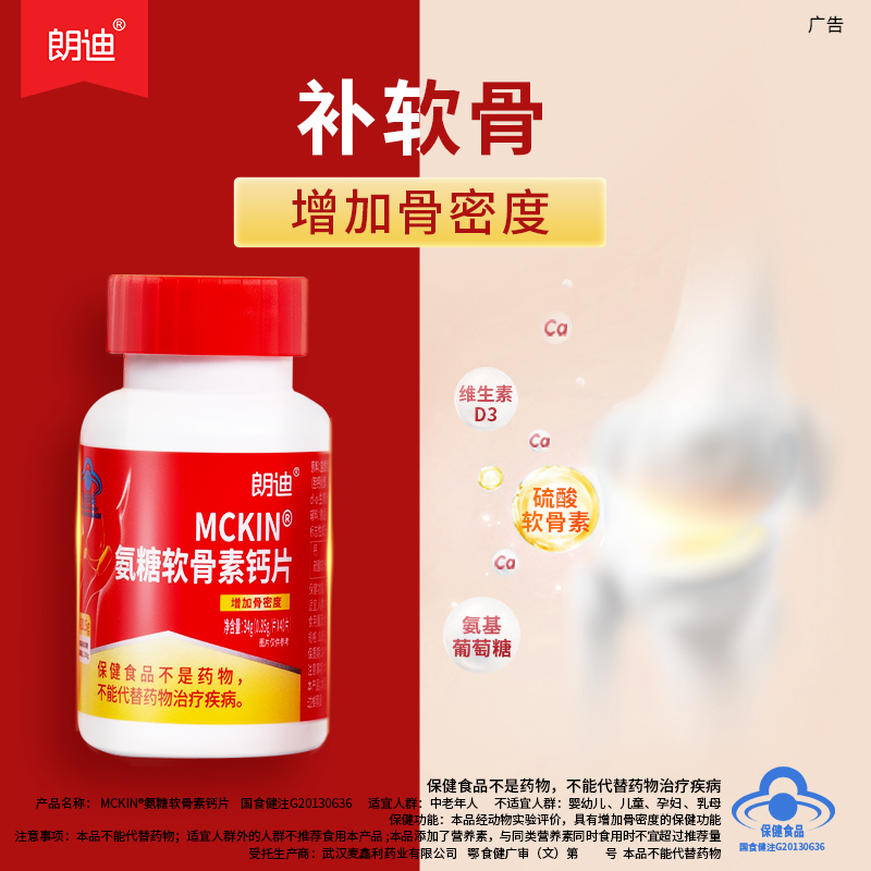 | 国食健注G20130636 | 武汉麦鑫利药业有限公司 | MCKIN 氨糖软骨素钙片 | 文 | 鄂食健广审(文)第250213-03492号 | 2025年2月13日 | |